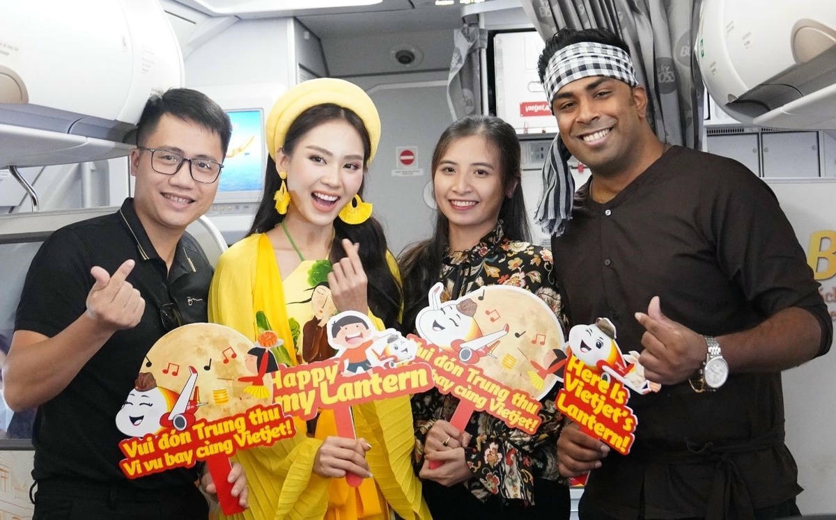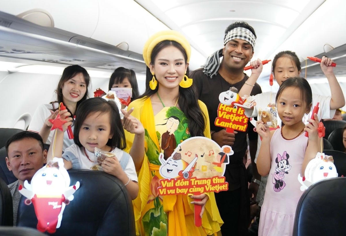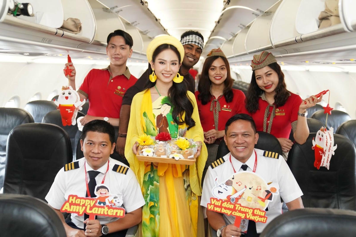 Bay Vietjet vui Tết Trung Thu tưng bừng cùng Hoa hậu Thế giới Việt Nam 2022 Huỳnh Nguyễn Mai Phương