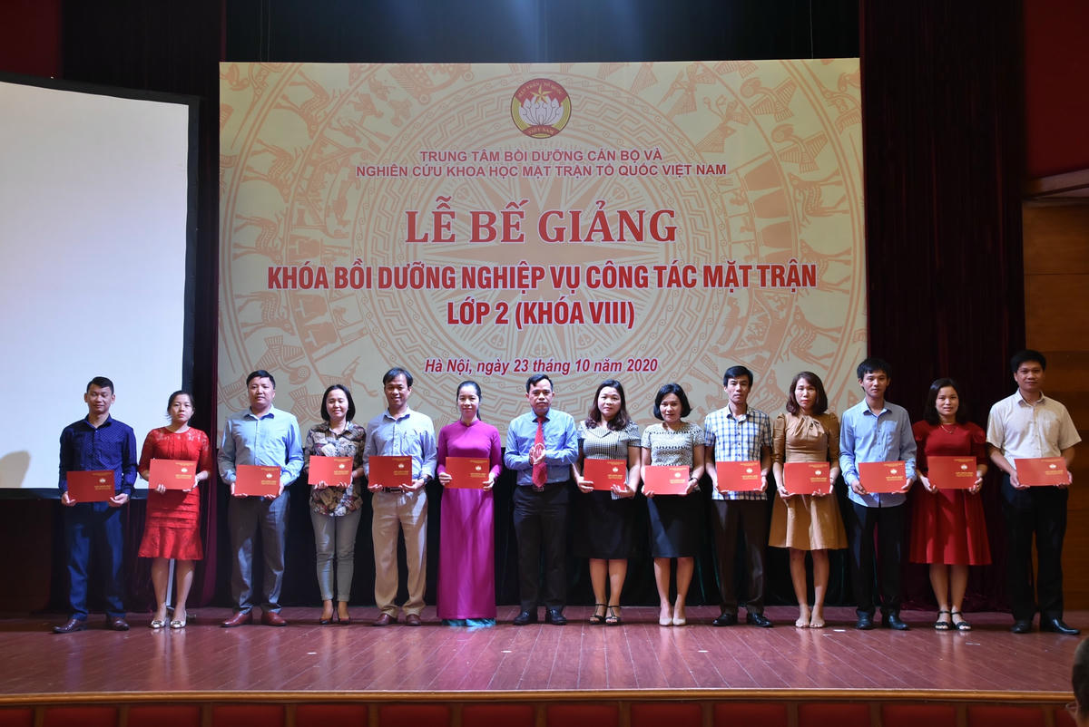 Trung tâm Bồi dưỡng cán bộ và Nghiên cứu khoa học MTTQ Việt Nam đã cấp Giấy chứng nhận đã hoàn thành chương trình lớp bồi dưỡng cho 150 học viên và quyết định biểu dương khen thưởng 30 học viên đã có nhiều thành tích trong việc tham gia lớp bồi dưỡng.