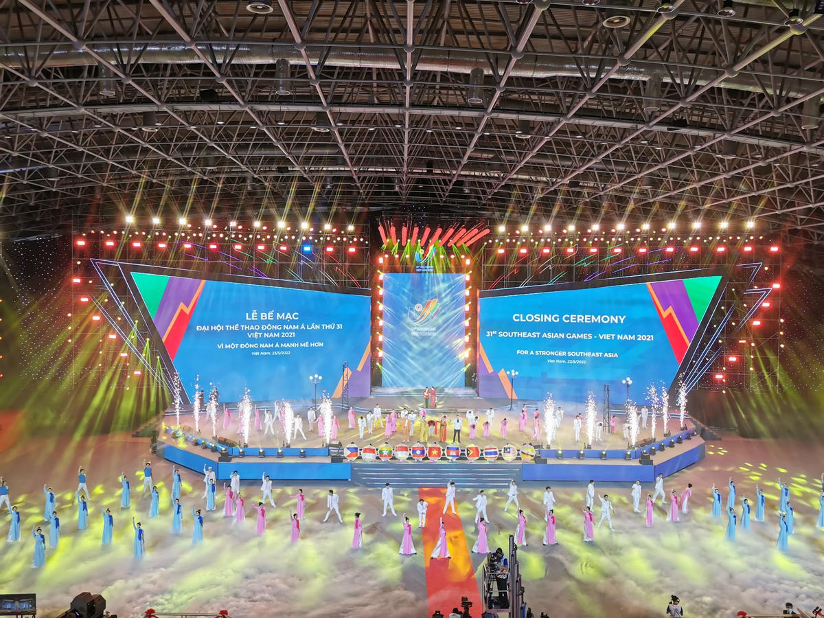 Tối 23/5, Lễ bế mạc SEA Games 31 đã diễn ra tại tại Cung điền kinh trong nhà, thuộc quận Nam Từ Liêm (Hà Nội). Không có những màn công nghệ, kỹ xảo hình ảnh, nước chủ nhà SEA Games 31 - Việt Nam đã gửi lời chào nồng ấm, thân thương nhất tới bạn bè khu vực trong khuôn khổ buổi lễ.