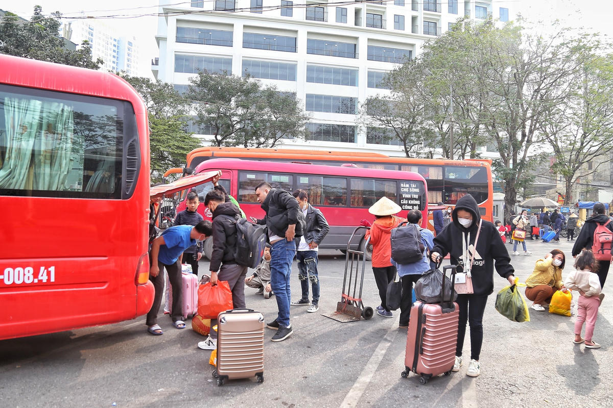 Sau kỳ nghỉ Tết Nguyên đán Quý Mão 2023, chiều 26/1 (tức mùng 5 Tết) bến xe tấp nập người dân trở lại Thủ đô để chuẩn bị cho ngày làm việc đầu tiên của năm mới.