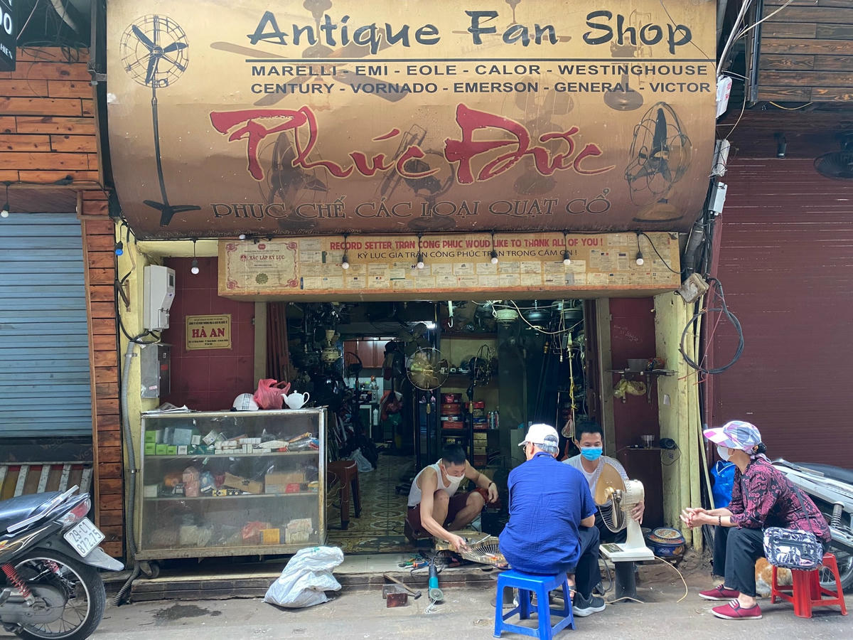 Trái với không khí sống động ban đêm ở con phố “Tây” Tạ Hiện, căn nhà nhỏ tại số 2 Tạ Hiện vẫn mở cửa ban ngày để duy trì “chữa bệnh” cũng như mua bán những chiếc quạt cổ.