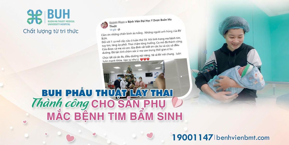 Nhắc đến BUH, chị Phạm Thị Quỳnh (33 tuổi ở huyện Ea H’Leo, tỉnh Đắk Lắk) hết lời khen ngợi. Chị Quỳnh kể: em bị bệnh tim bẩm sinh tứ chứng Fallot. Em đã điều trị bằng phẫu thuật mổ tim (vá lỗ thông liên thất) tại Viện tim TP HCM cách đây 8 năm nhưng thường xuyên vẫn bị khó thở và thiếu oxy mạn tính. Bác sĩ tim mạch đã khuyến cáo em không được mang thai. Thế nhưng, với khát khao tình mẫu tử, bất chấp rủi ro, nguy hiểm tới tính mạng em vẫn quyết định mang thai.
