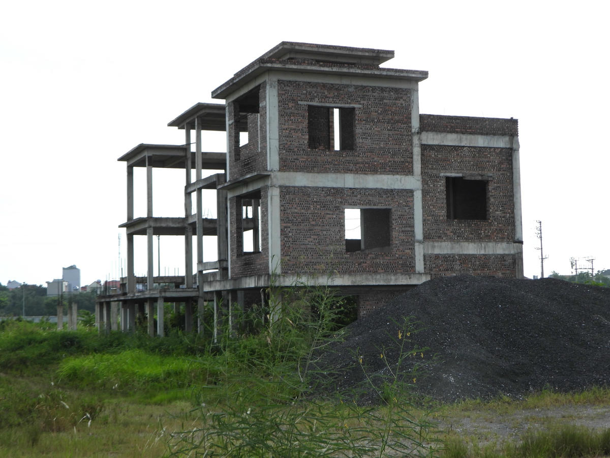 Công trình duy nhất trong dự án là một căn nhà đang xây thô đến tầng thứ 3 rồi bỏ dở, có dấu hiệu xuống cấp.