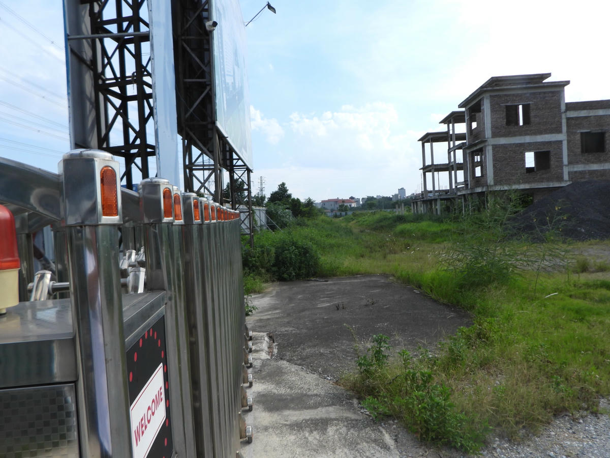 Tuy nhiên, chỉ bước qua cánh cổng là một khung cảnh hoàn toàn khác. Các công trình dự án Bệnh viện chẳng thấy đâu mà chỉ thấy bãi đất hoang.