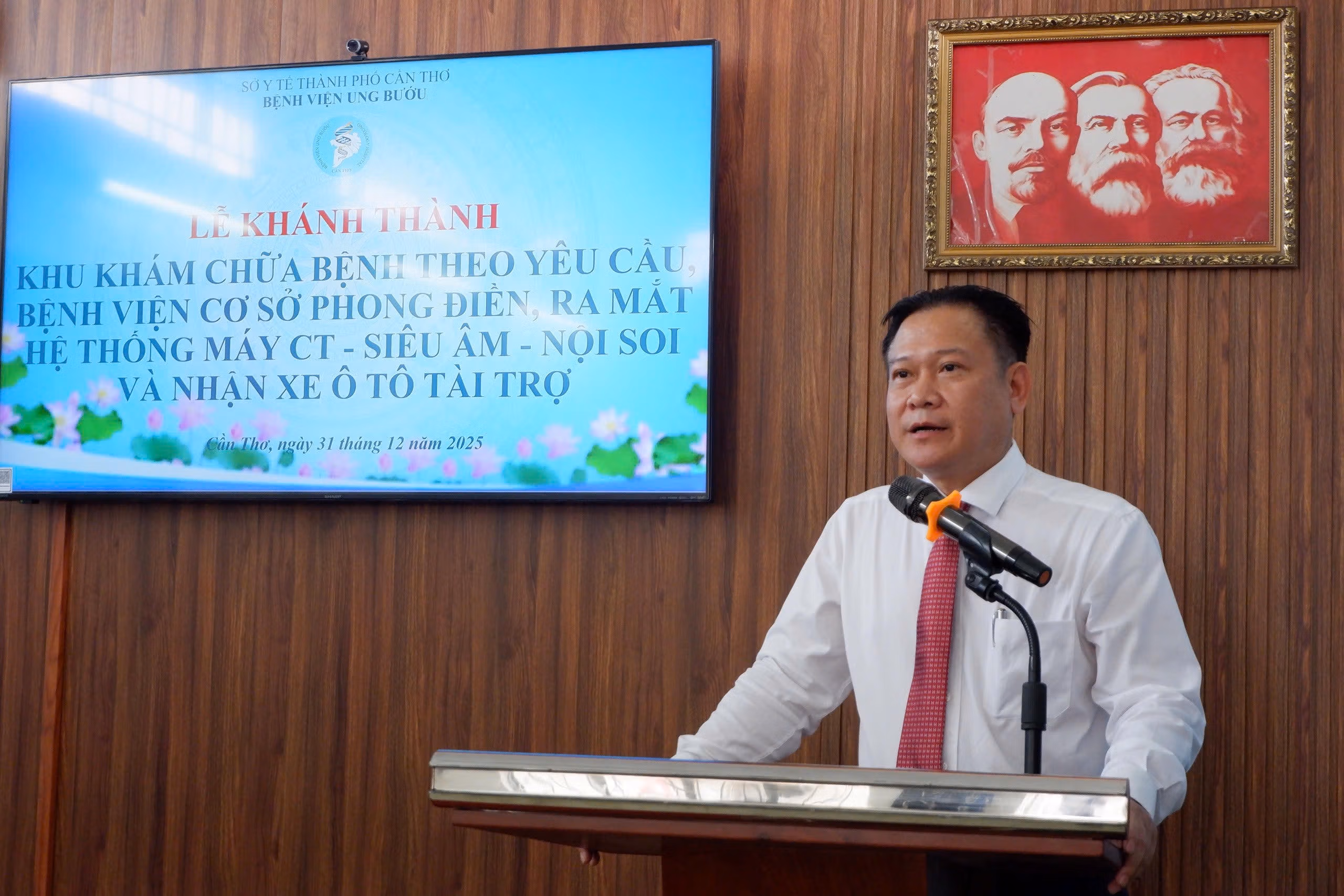 Phát biểu tại buổi lễ, Giám đốc Sở Y tế Cần Thơ Hoàng Quốc Cường cho biết: Sở Y tế đã hoàn thành thủ tục tái khởi động lại công trình xây dựng Bệnh viện Ung bướu mới tại phường An Bình. Phấn đấu đến cuối năm 2026 hoàn thành và đưa vào sử dụng có quy mô 1.200 giường với các trang thiết bị hiện đại nhất miền Tây.