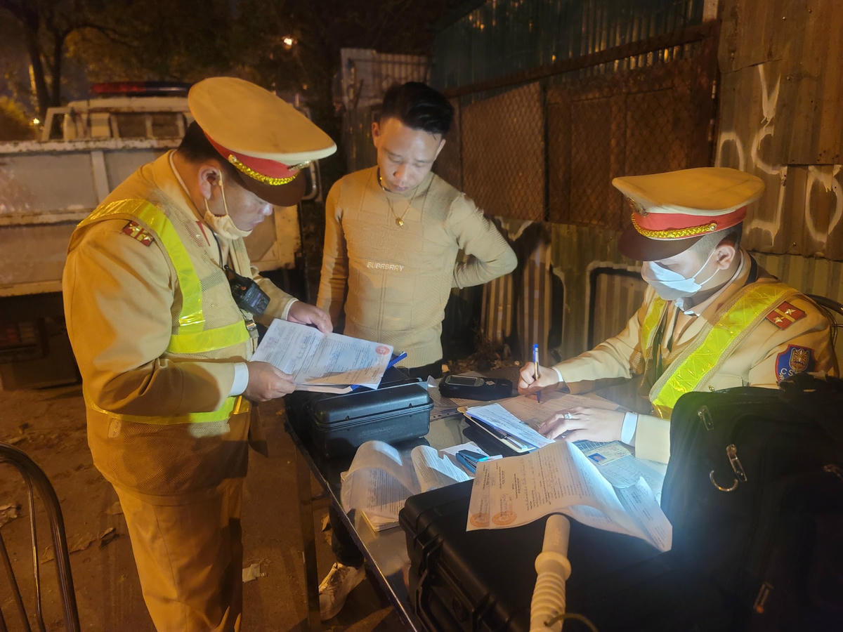 Tối ngày 19/2, Đội CSGT Đường bộ số 6 thuộc Phòng CSGT TP Hà Nội thành lập Tổ công tác lập chốt tại nút giao đường Miếu Đầm và Đại lộ Thăng Long (Mễ Trì, Từ Liêm, Hà Nội), thực hiện chuyên đề kiểm tra nồng độ cồn.
