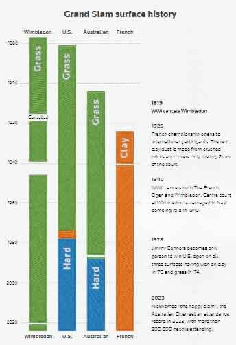 Hai giải đấu theo truyền thống yêu cầu các phong cách chơi rất khác nhau do bề mặt sân của chúng ở hai đầu đối diện của phổ tốc độ sân, khiến việc giành chiến thắng cả hai trong cùng một năm trở thành một thách thức đặc biệt đối với bất kỳ người chơi nào.