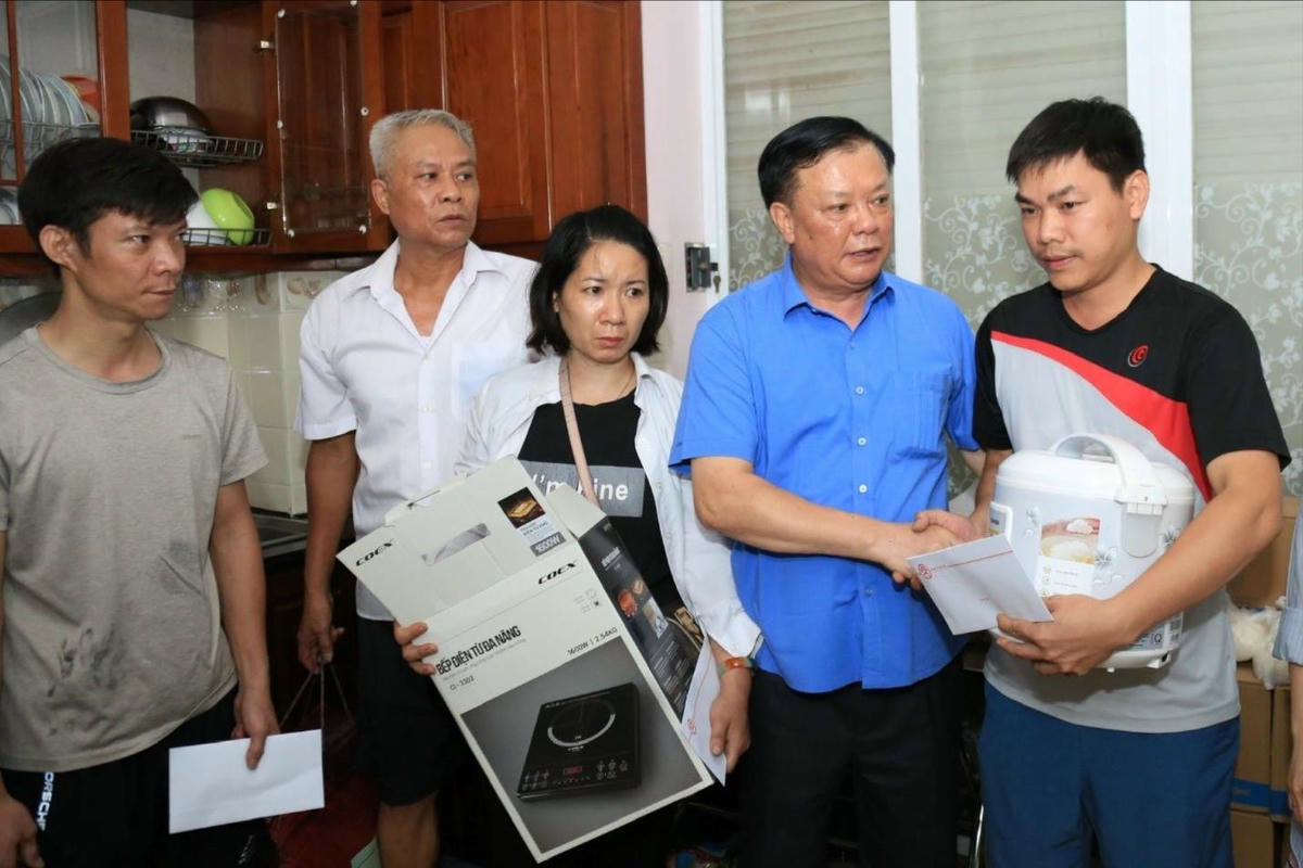 Cùng đó, hỗ trợ những đồ dùng thiết yếu cho các gia đình đang ở tạm cư tại nhà số 5C, ngách 68, ngõ 29, phố Khương Hạ (tổ dân phố 18, phường Khương Đình).