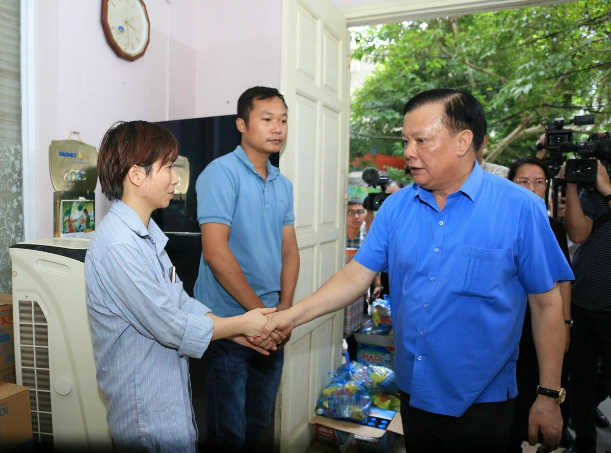 Bí thư Đinh Tiến Dũng cũng thông tin nhanh với bà con về các biện pháp hỗ trợ của thành phố đối với các nạn nhân. Đồng thời, khẳng định thành phố sẽ luôn ở bên các gia đình, tạo điều kiện để các hộ nhanh chóng ổn định cuộc sống.