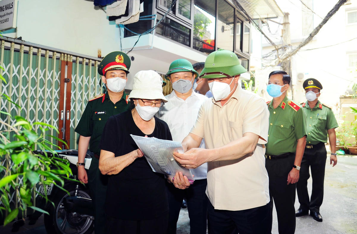 Kiểm tra tình hình cung cấp nhu yếu phẩm cho người dân, Bí thư Thành ủy đã bất ngờ gõ cửa hộ gia đình số nhà 46 phố Trần Quý Cáp, hộ gia đình số nhà 87 ngõ Văn Chương và trực tiếp hỏi han về tình hình cách ly, điều kiện sinh hoạt. Cả hai hộ gia đình đều cho biết, mỗi tuần được phường cung cấp lượng thực, thực phẩm 3 lần và hàng ngày được cung cấp đầy đủ rau xanh.