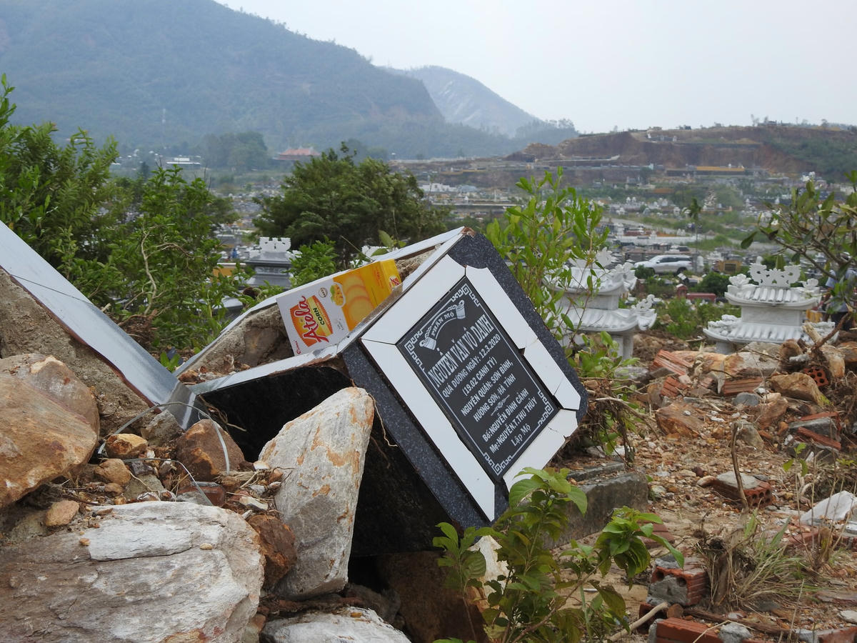 Báo cáo tại hiện trường với Bí thư Thành ủy Đà Nẵng, Phó Chủ tịch UBND TP Đà Nẵng Lê Quang Nam cho biết, tính đến thời điểm hiện tại cơ quan chức năng đã thống kê có 610 ngôi mộ bị đất đá từ trên cao tràn xuống, vùi lấp, hư hại, trôi trượt khỏi vị trí an táng ban đầu. Khu vực sạt lở rộng trên 22.243 m2 với tổng lượng đất đá tràn xuống là 15.754 m3.