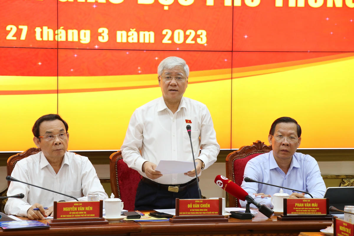 Bên cạnh đó, Chủ tịch UBTƯ MTTQ Việt Nam cũng đặt ra một số vấn để lãnh đạo TP HCM giải quyết, chẳng hạn như: Thành phố đánh giá các mục tiêu đạt ở mức độ nào? Thực tiễn việc thực hiện các nội dung đề ra như thế nào tại thành phố?
