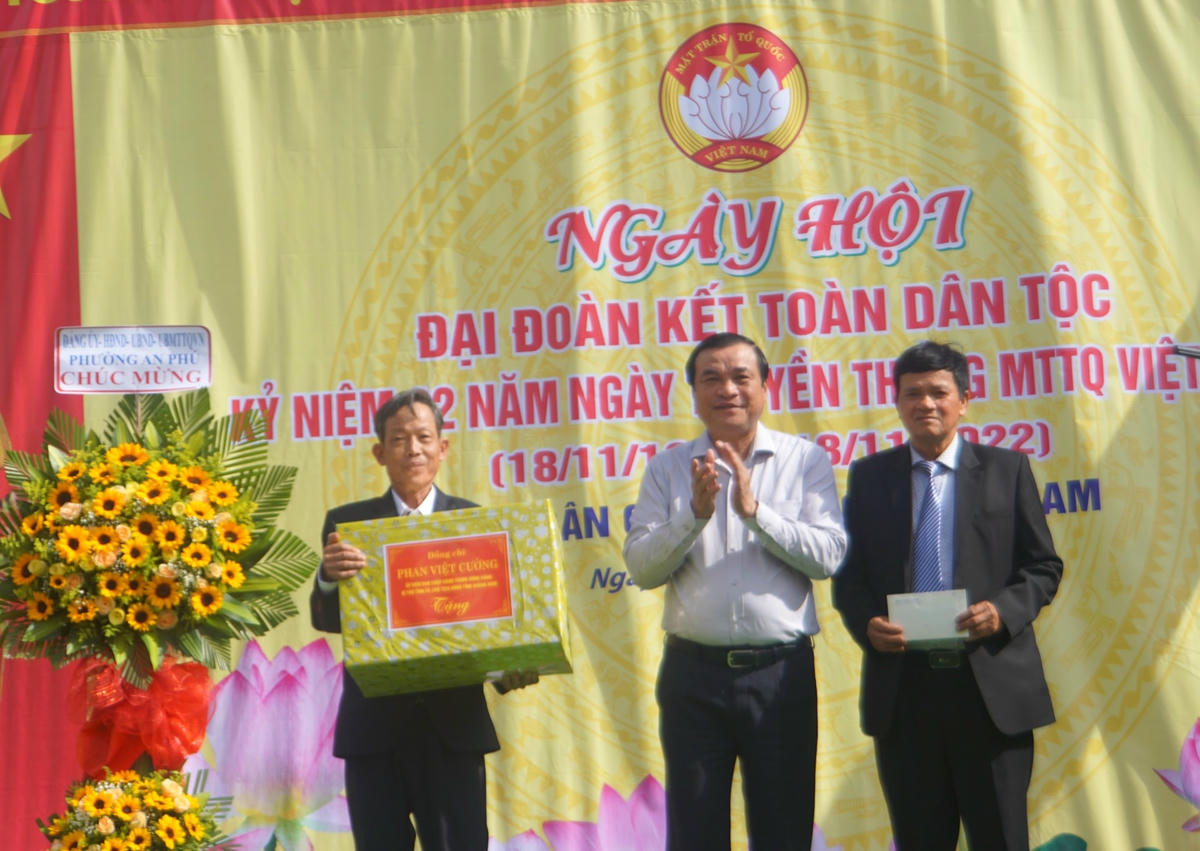 Dịp này, ông Phan Việt Cường, Bí thư Tỉnh ủy Quảng Nam đã tặng quà cho Ban công tác Mặt trận KP An Hà Nam và trao 20 suất quà, 1 nhà đại đoàn kết cho người nghèo, gia đình chính sách tại KP An Hà Nam.