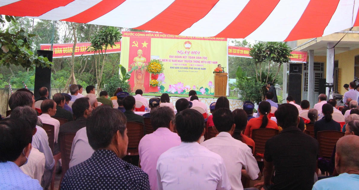 Chào mừng kỷ niệm 92 năm Ngày truyền thống MTTQ Việt Nam (18/11/1930 - 18/11/2022), sáng 9/11, tại khối phố (KP) An Hà Nam, phường An Phú, thành phố Tam Kỳ, tỉnh Quảng Nam tổ chức “Ngày hội Đại đoàn Kết toàn dân tộc”.