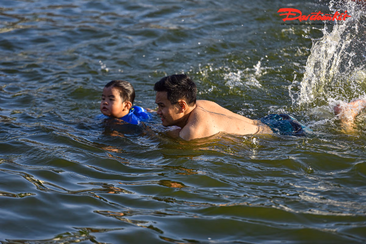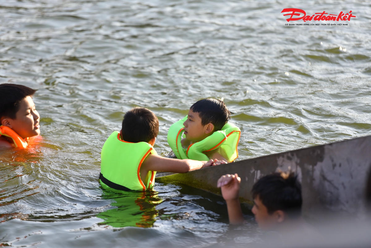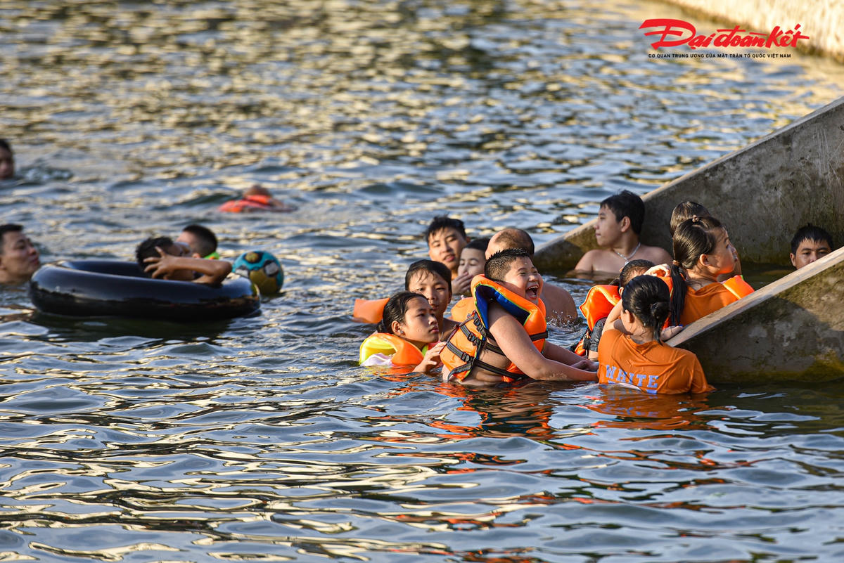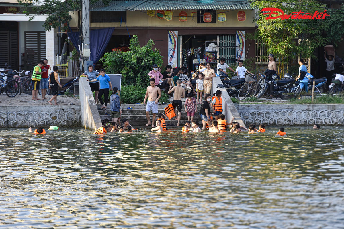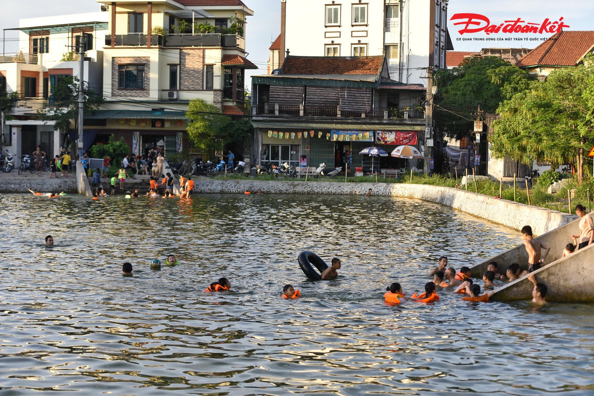 Những ngày này, Ao làng Thiên (Dương Liễu, Hoài Đức, Hà Nội) thu hút hàng trăm lượt người đến bơi để giải tỏa cơn nóng bức ngày hè. Trước kia, nơi đây là ao đình bị ô nhiễm trầm trọng, thì nay đã được cải tạo thành bể bơi ‘miễn phí’ cho các em vào mỗi dịp hè.