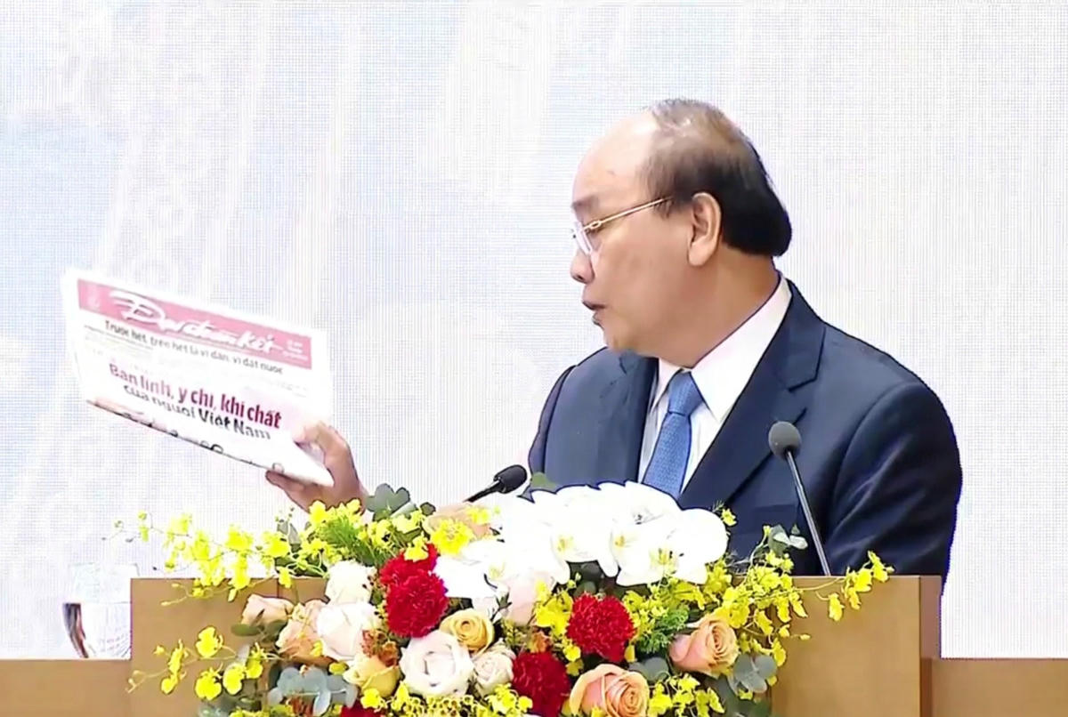 Thủ tướng nói: Báo Đại Đoàn kết hôm nay đăng bài “Vượt qua khó khăn năm 2020: Bản lĩnh, ý chí, khí chất của người Việt Nam”. Bản lĩnh này, ý chí, khí chất này cần thể hiện trong từng địa phương, từng ngành, từng cấp trong thực hiện nhiệm vụ đầy khó khăn thử thách của năm 2021 sắp tới.