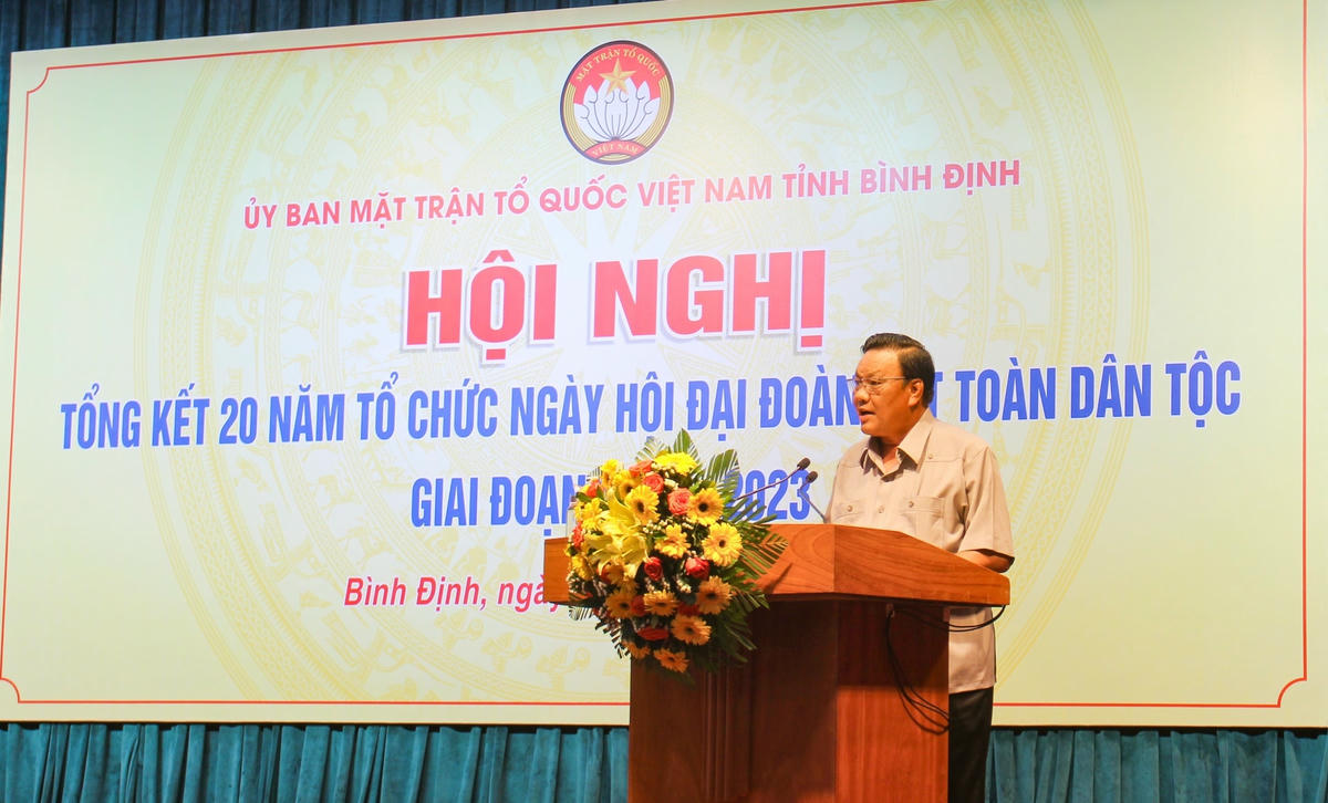 Phát biểu tại Hội nghị, ông Lê Kim Toàn, Phó Bí thư Thường trực Tỉnh ủy, Trưởng đoàn Đoàn BQH tỉnh Bình Định biểu dương những kết quả đạt được mà MTTQ các cấp trong toàn tỉnh Bình Định, qua 20 năm tổ chức Ngày hội Đại đoàn kết toàn dân tộc.