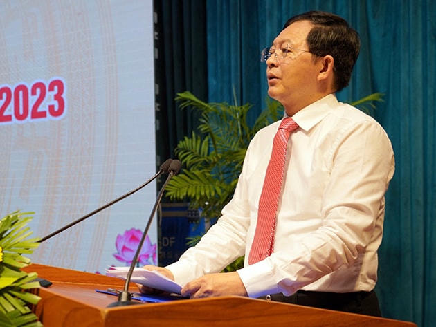 Bí thư Tỉnh ủy Bình Định Hồ Quốc Dũng phát biểu, bày tỏ tỉnh Bình Định rất vinh dự được Liên hiệp các tổ chức hữu nghị Việt Nam chọn là nơi tổ chức Hội nghị toàn quốc công tác đối ngoại nhân dân năm 2023. Đồng thời nhấn mạnh tỉnh Bình Định luôn xác định công tác đối ngoại có vai trò “đi trước mở đường”, góp phần quan trọng thực hiện thắng lợi các mục tiêu phát triển KT-XH của địa phương. Vì vậy, trên cơ sở bám sát đường lối đối ngoại “độc lập, tự chủ, hòa bình, hữu nghị, hợp tác và phát triển, đa dạng hóa, đa phương hóa quan hệ đối ngoại” của Đảng và Nhà nước ta, tỉnh Bình Định đã tích cực, chủ động triển khai đồng bộ, sáng tạo, hiệu quả các hoạt động đối ngoại trên cả 3 trụ cột: Đối ngoại Đảng, ngoại giao Nhà nước và đối ngoại nhân dân.