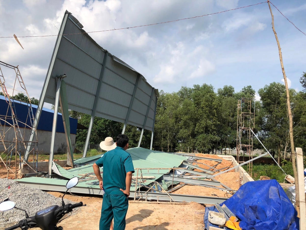 Một số công nhân đang làm việc trong công trình thì bất ngờ phần mái, các khung sắt nhà xưởng đổ sập.