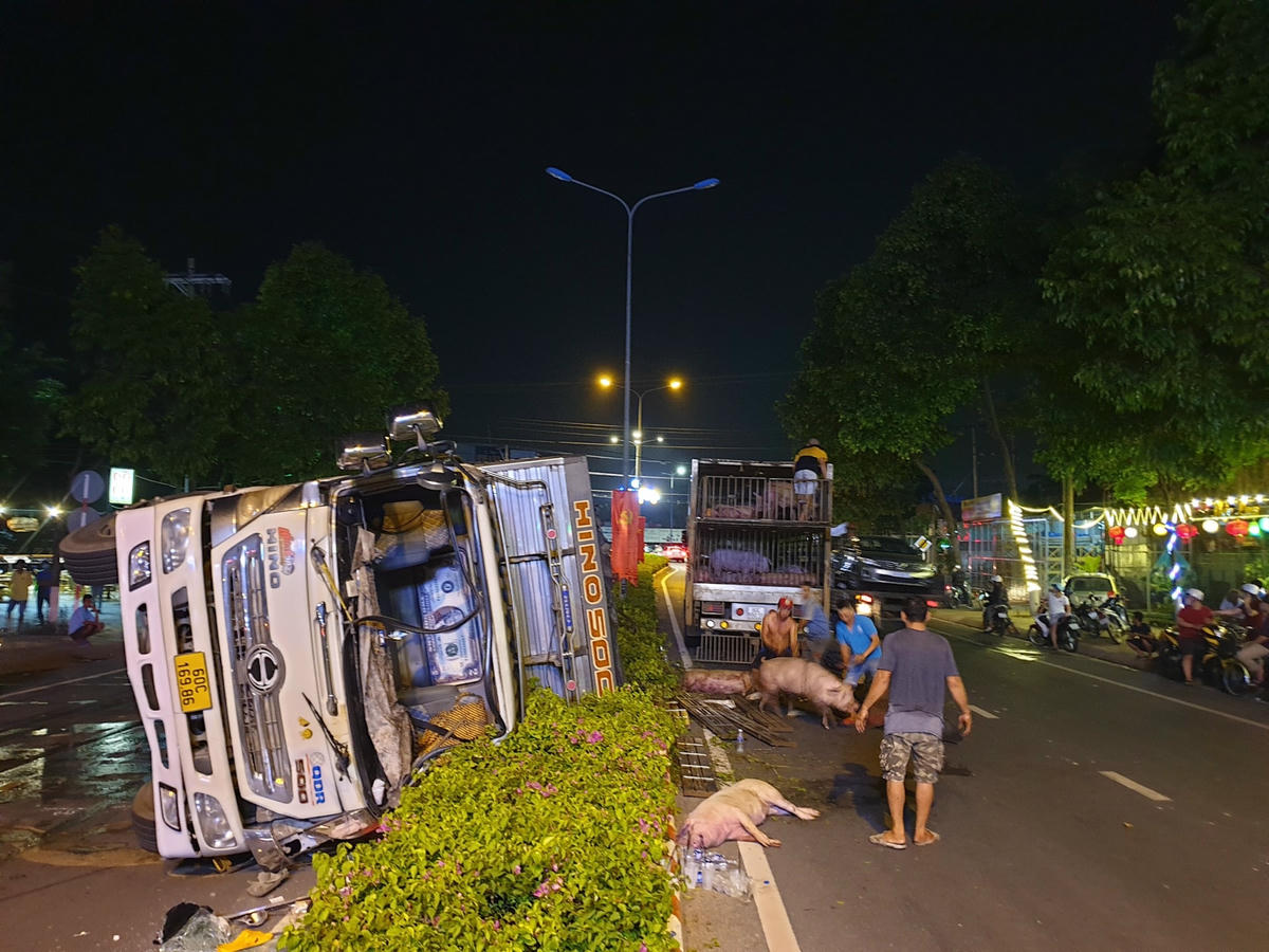 Được biết, số heo này được vận chuyển từ tỉnh Đắk Nông đi Đồng Nai. Tới gần 0 giờ, hiện trường được xử lý xong.