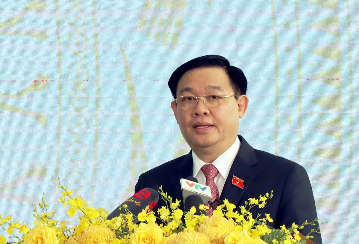 Thay mặt lãnh đạo Đảng, Nhà nước, Chủ tịch Quốc hội Vương Đình Huệ chúc mừng toàn thể cán bộ, đảng viên và các tầng lớp nhân dân thị xã Chơn Thành.
