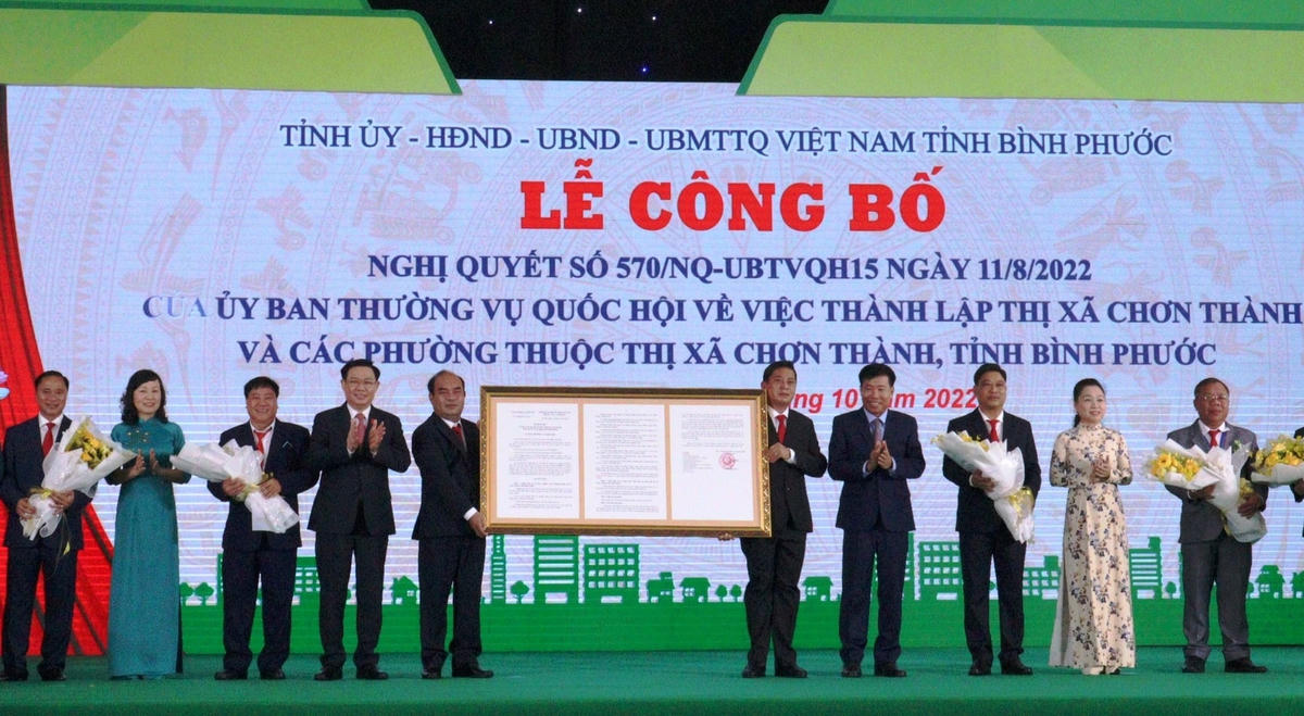Ngày 1/10, UBND tỉnh Bình Phước đã tổ chức lễ công bố thành lập thị xã Chơn Thành và các đơn vị hành chính trực thuộc theo Nghị quyết 570/NQ-UBTVQH15 ngày 11/8/2022 của Ủy ban Thường vụ Quốc hội.