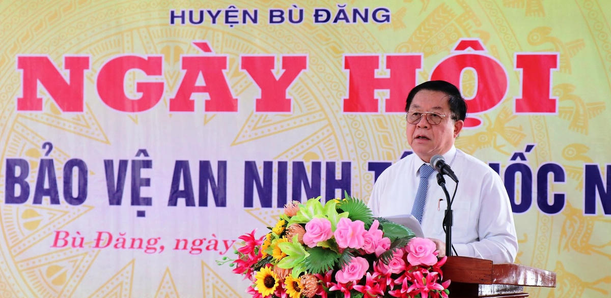 Phát biểu tại ngày hội, Bí thư Trung ương Đảng, Trưởng ban Tuyên giáo Trung ương Nguyễn Trọng Nghĩa đã biểu dương, đánh giá cao những nỗ lực của toàn tỉnh trong xây dựng phong trào Toàn dân bảo vệ an ninh Tổ quốc. Bí thư Trung ương Đảng, Trưởng ban Tuyên giáo Trung ương mong muốn, trong thời gian tới, tỉnh Bình Phước nói chung, huyện Bù Đăng và xã Đoàn Kết nói riêng cần xây dựng hiệu quả hơn nữa phong trào; tăng cường sự đoàn kết, thống nhất trong nhân dân; đặc biệt phát huy vai trò của cấp ủy, chính quyền, lực lượng công an nhân dân trong phong trào bảo vệ an ninh Tổ quốc; phối hợp chặt chẽ với mặt trận, các đoàn thể phát huy vai trò, trách nhiệm của nhân dân trong bảo vệ an ninh Tổ quốc, đưa phong trào phát triển sâu rộng, vững chắc với chất lượng và hiệu quả cao, đáp ứng yêu cầu, nhiệm vụ trong tình hình mới.