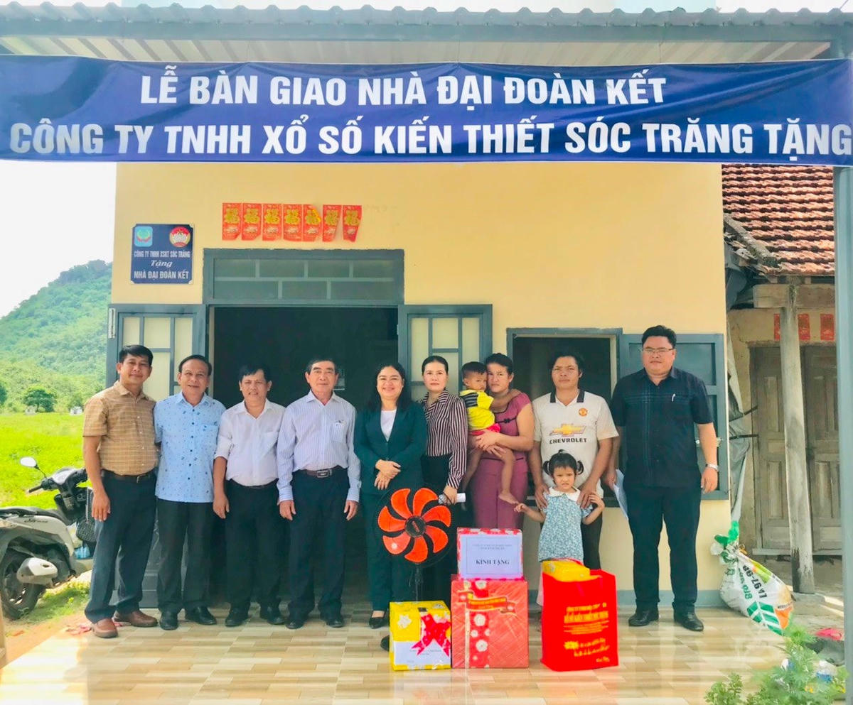 Trong đó, Công ty TNHH MTV Xổ số kiến thiết Sóc Trăng hỗ trợ Quỹ “ Vì người nghèo” tỉnh Bình Thuận số tiền 500 triệu đồng để xây dựng 10 căn nhà “Đại đoàn kết” cho hộ nghèo tại địa phương, mỗi căn 50 triệu đồng. Theo đó, Ủy ban MTTQ Việt Nam tỉnh Bình Thuận đã ra quyết định phân bổ về cho huyện Tánh Linh 4 căn, huyện Bắc Bình 3 căn và huyện Hàm Thuận Bắc 3 căn.