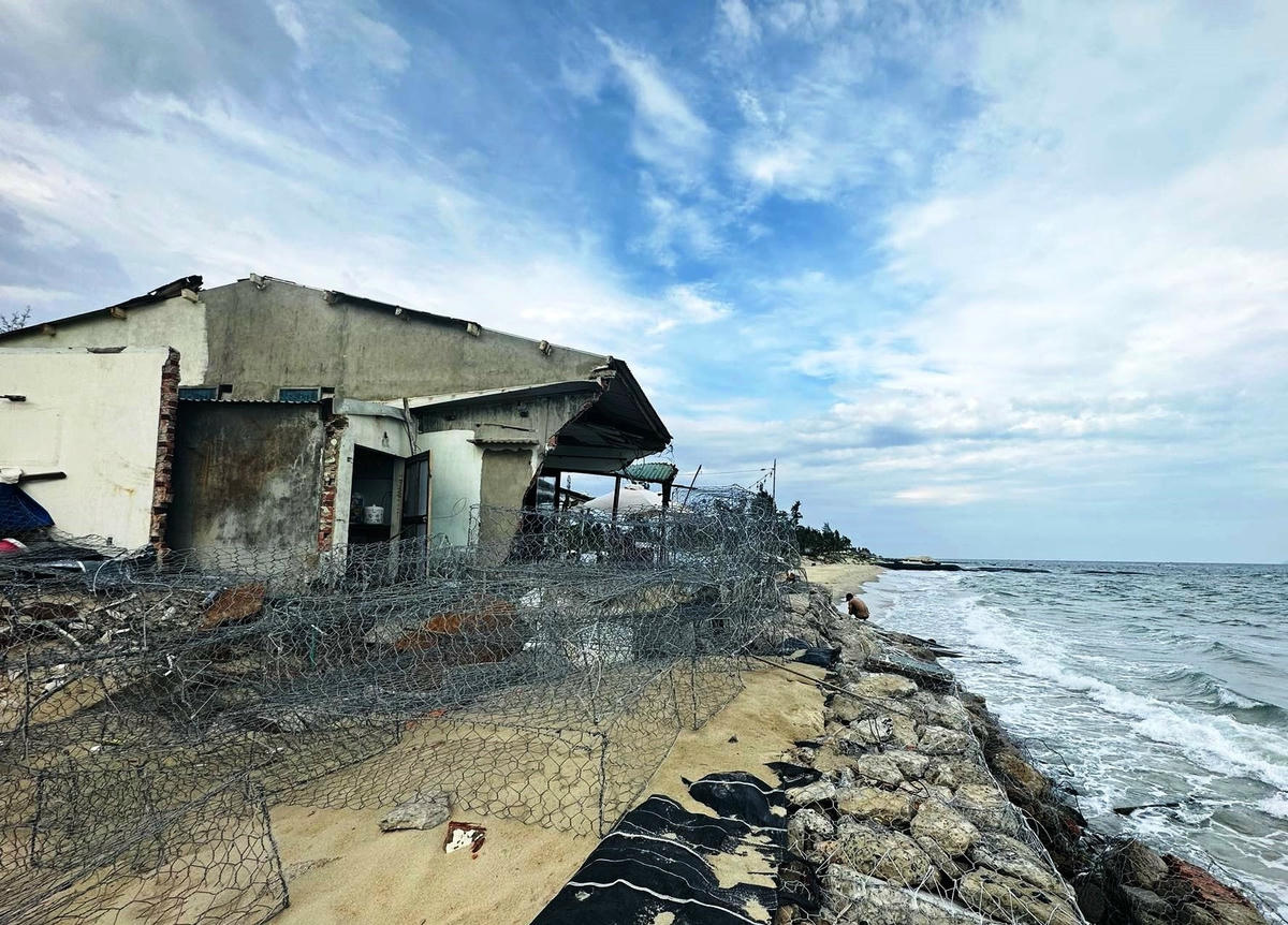 “Bà con chúng tôi thuê nhân công làm rọ sắt, chất đầy đá hộc, sắp xếp chồng lên nhau dọc theo bờ biển bao quanh các ngôi nhà để chống lại sóng biển. Bờ kè này dài hơn 100m, cao hơn 1,5m, với tổng kinh phí xây dựng hơn 300 triệu đồng. Chính quyền đã có nhiều dự án chống lại triều cường nhưng bờ biển vẫn sạt lở, sạt lở ngay trước nhà mình thì mình phải lo” - anh Thanh cho biết.