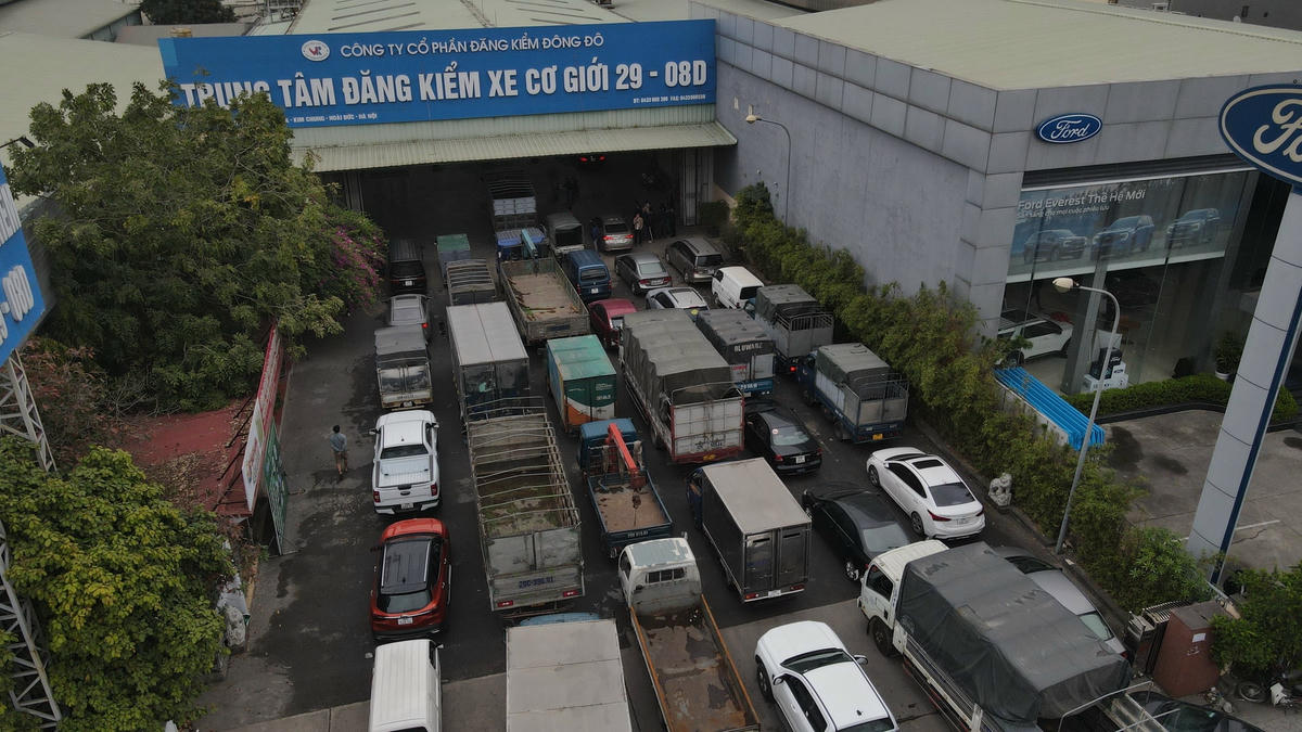 [Hàng xe nối dài tại trung tâm đăng kiểm 29-08D trước thời điểm kiểm tra]