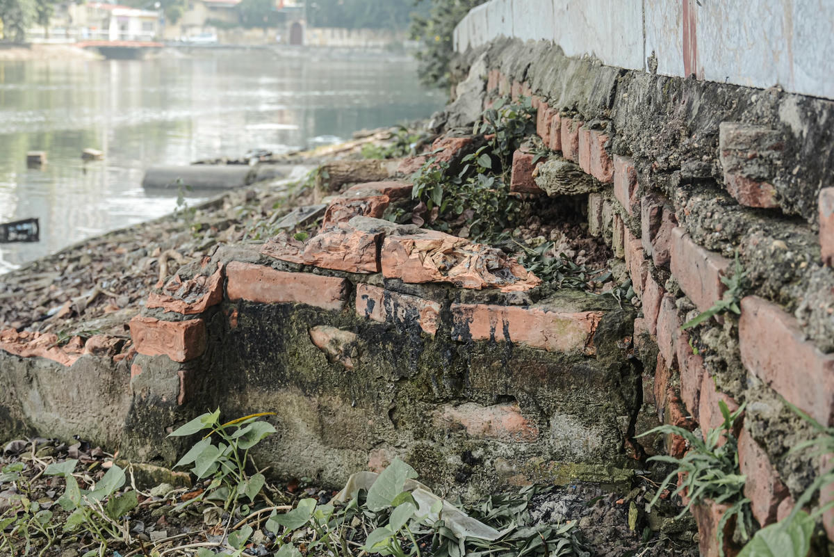Tuyến bờ kè của hồ Trúc Bạch (quận Ba Đình, Hà Nội) đang bị xuống cấp trầm trọng, gạch vỡ, đất sụt lún... gây ảnh hưởng đến hệ thống bảo vệ hành lang giao thông cũng như nguồn nước.