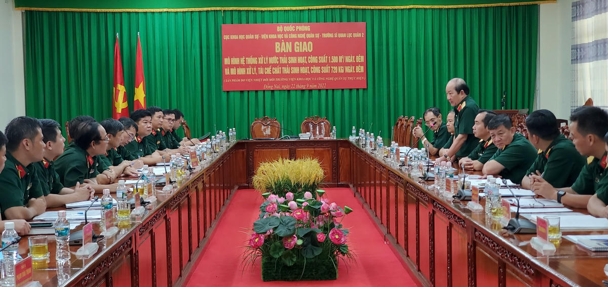 Chiều 25/9, Cục Khoa học Quân sự, Viện Khoa học và Công nghệ Quân sự, Bộ Quốc phòng cho biết, vừa tiến hành bàn giao Trạm xử lý nước thải sinh hoạt và Nhà xử lý, tái chế chất thải rắn cho Trường Sĩ quan Lục quân 2 - Đại học Nguyễn Huệ tại TP Biên Hòa, tỉnh Đồng Nai.
