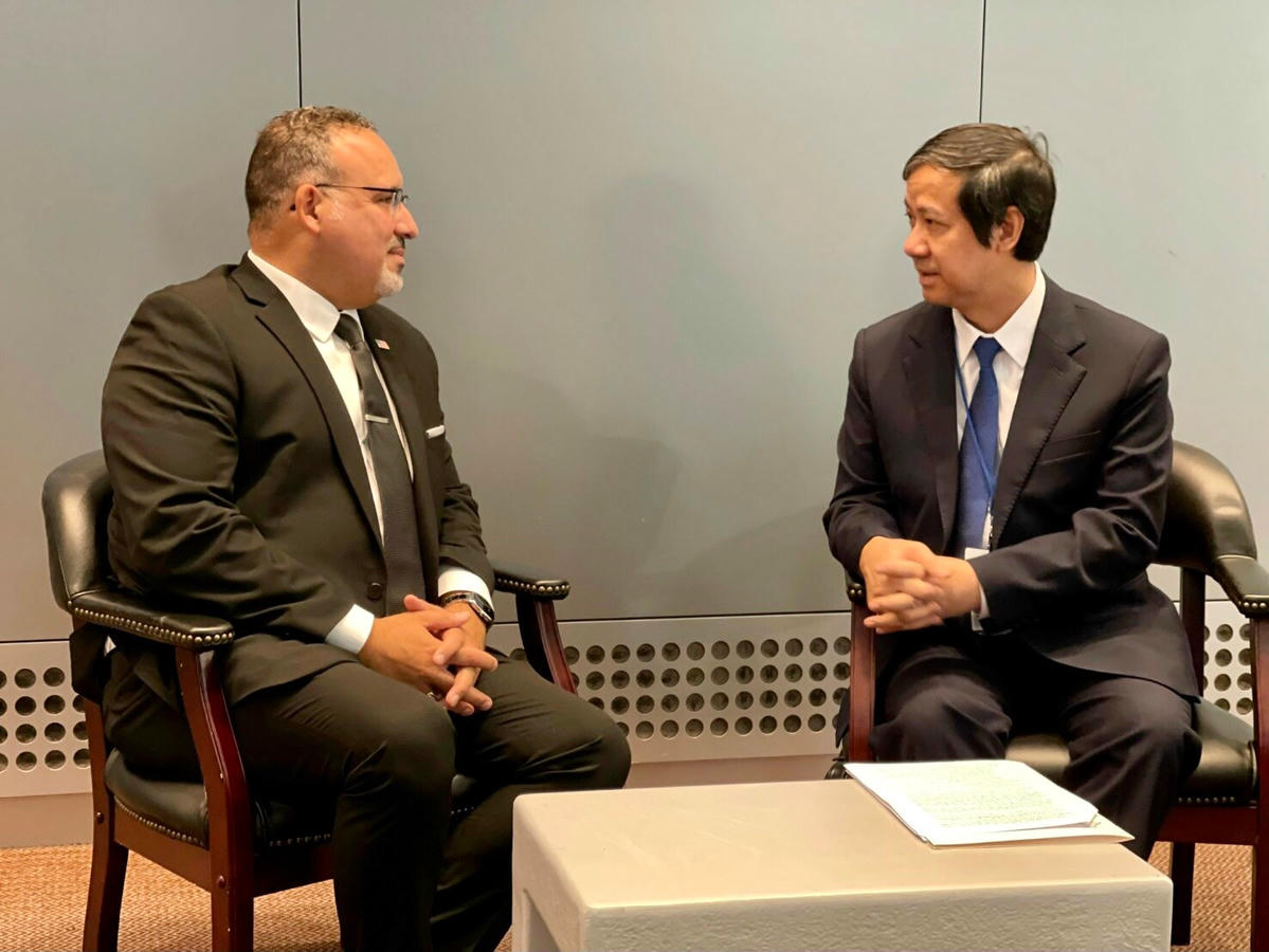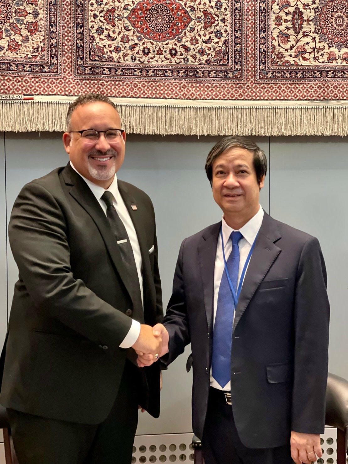 Bộ trưởng Giáo dục Hoa Kỳ Miguel Cardona cũng cho biết, Bộ Giáo dục Hoa Kỳ luôn sẵn sàng là đối tác với Bộ GDĐT Việt Nam; đảm bảo rằng các cơ quan thuộc ngành Giáo dục Hoa Kỳ sẽ hợp tác hỗ trợ Việt Nam cũng như chia sẻ một số chiến lược giáo dục của Hoa Kỳ. Đồng thời, thúc đẩy việc hỗ trợ sinh viên Việt Nam đang tìm kiếm cơ hội theo đuổi học tập, cũng như các em học sinh, sinh viên đang theo học tại Hoa Kỳ.
