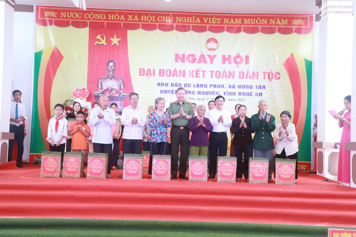 Theo đó, sáng ngày 17/11, tại làng Phan, xã Hưng Tân, huyện Hưng Nguyên (Nghệ An), nhân dịp kỷ niệm 92 năm Ngày thành lập Mặt trận Dân tộc thống nhất Việt Nam (18/11/1930 - 18/11/2022), người dân làng Phan đã tổ chức Ngày hội Đại đoàn kết toàn dân tộc. Tham dự Ngày hội có Đại tướng Tô Lâm, Ủy viên Bộ Chính trị, Bộ trưởng Bộ Công an, lãnh đạo địa phương và người dân.
