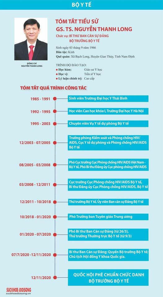 Ngày 15/11/2020, Bộ Y tế đã Công bố quyết định bổ nhiệm chức vụ Bộ trưởng Bộ Y tế đối với GS. TS. Nguyễn Thanh Long – Quyền Bộ trưởng Bộ Y tế.
