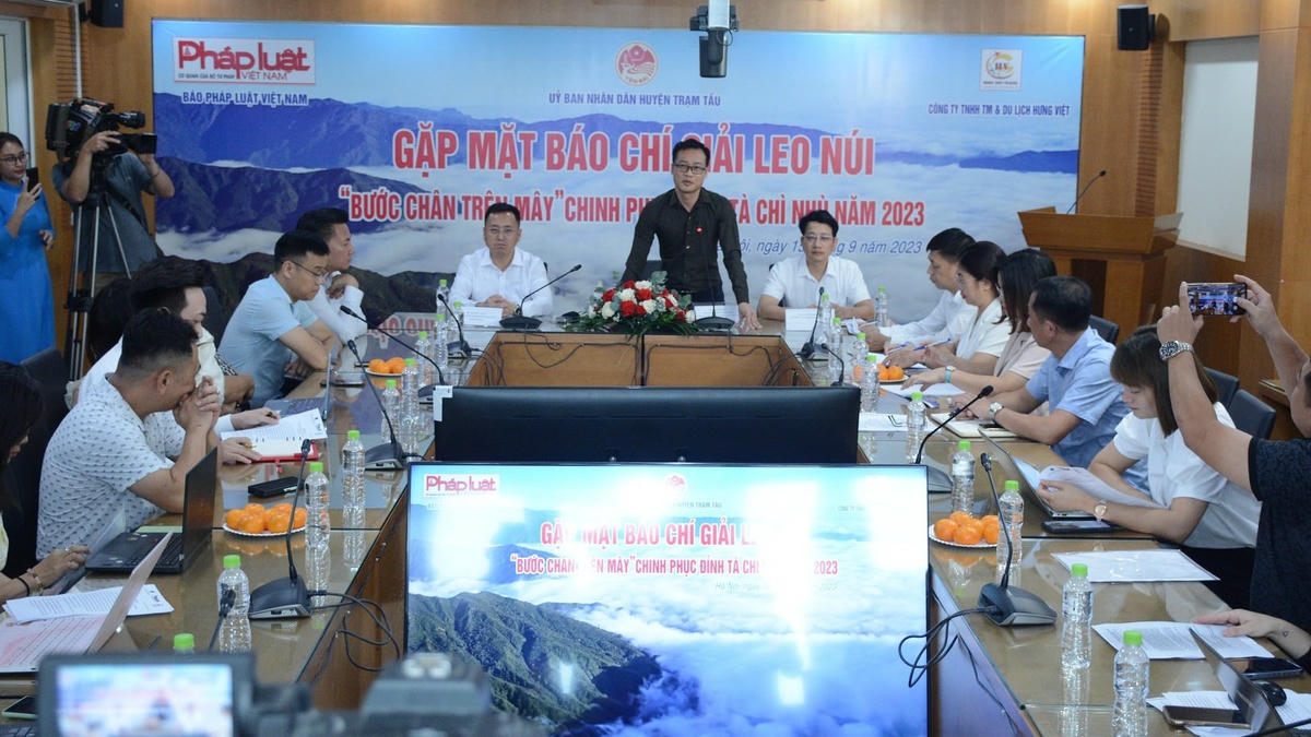 Sáng 15/9, tại Hà Nội, Báo Pháp luật Việt Nam phối hợp với Công ty TNHH Thương mại và Du lịch Hưng Việt và UBND huyện Trạm Tấu (Yên Bái) gặp mặt báo chí giới thiệu về Giải leo núi “Bước chân trên mây” chinh phục đỉnh Tà Chì Nhù lần thứ nhất năm 2023.