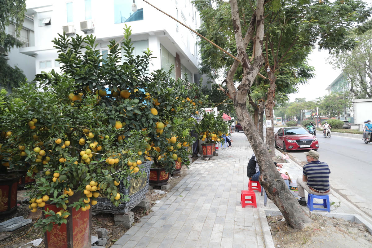 Gần 2 tháng nữa mới đến Tết Nguyên đán Nhâm Dần 2022, thế nhưng trên đường Lạc Long Quân (quận Tây Hồ, Hà Nội) đã xuất hiện những cây bưởi cảnh, chanh tứ quý “nô nức” xuống phố đón Tết sớm.