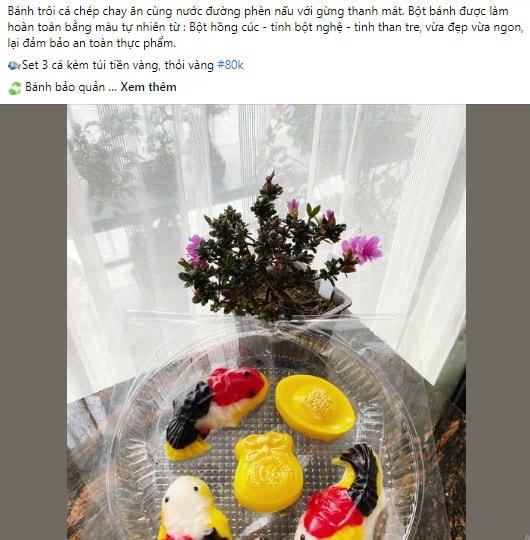Hiện nay, nhiều gia đình thay vì mua cá chép sống để thả xuống sông, hồ thì họ mua xôi, bánh, thạch… hình cá chép để cúng, sau đó có thể ăn để “thụ lộc”. Trên mạng xã hội, các mặt hàng kể trên cũng được chào bán rất rầm rộ. Mẫu mã của các loại hàng cũng đa dạng, phong phú.