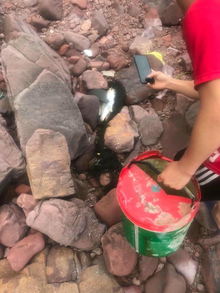 Cũng theo người dân, dọc bờ cát bãi biển, cá nằm chết khá nhiều, có những con to khoảng 3-5kg, còn cá nhỏ nhỏ tầm bắp tay và nhỏ hơn. Số lượng cá chết khoảng 30- 50kg.