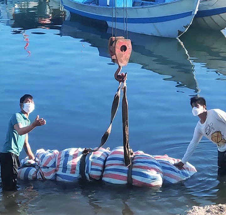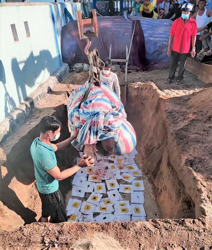 Do dịch Covid-19 diễn biến phức tạp nên việc an táng cá Ông diễn ra nhanh gọn để phòng, chống dịch bệnh.
