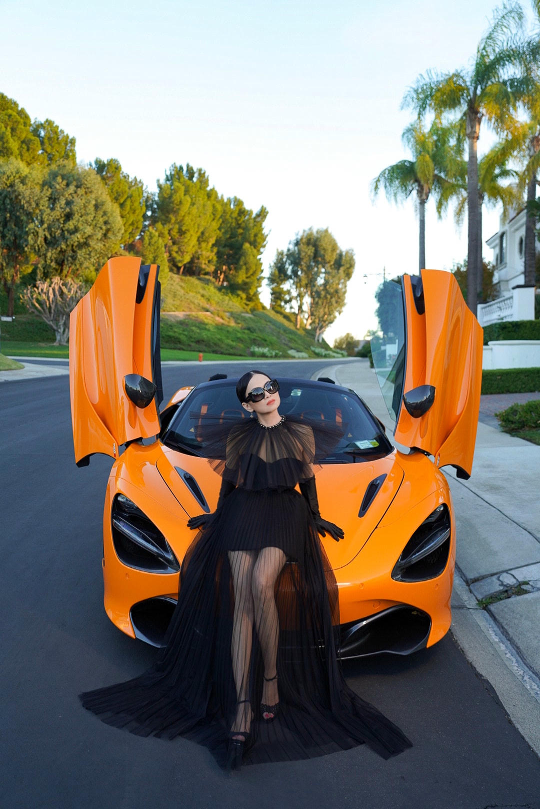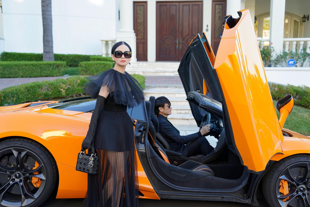 Ca sĩ Hà Phương vừa chia sẻ những hình ảnh mới bên cạnh hai chiếc siêu xe trị giá hàng chục tỷ đồng trong bộ sưu tập của chồng - tỷ phú Chính Chu.