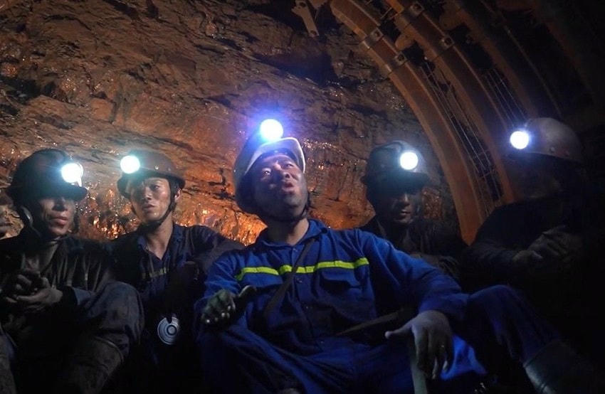 Ca sĩ Phúc Tiệp chia sẻ, toàn bộ nền địa tầng bên dưới hầm lò sâu cả vài trăm mét kia là những vỉa than, mỏ than, ở dưới đó các công nhân thở qua đường dẫn ôxy chung chạy từ trên mặt đất, không gian bụi mù mịt khủng khiếp mỗi khi có mũi khoan được dí vào vỉa than để khoan… Mồ hôi chảy ra quện với bụi than khiến ai nấy đều lấm lem không chỉ mặt mũi mà toàn bộ từ trên đầu xuống dưới chân, cho đến khi ra khỏi hầm lò chỉ còn mỗi hàm răng là trắng. Hình ảnh những người công nhân mỏ bước chân lên mặt đất, tháo đôi ủng dốc ra òng ọc nước, chính là nước do mồ hôi của họ chảy ra sau một ngày làm việc mệt nhọc. Có điều, tất cả đều rất yêu đời và lạc quan.