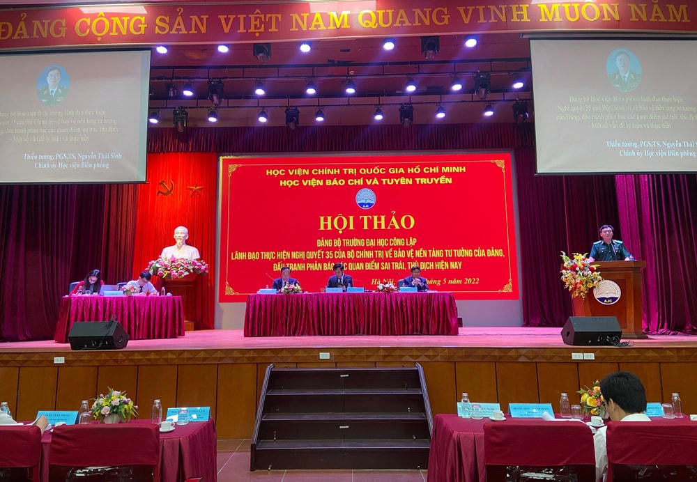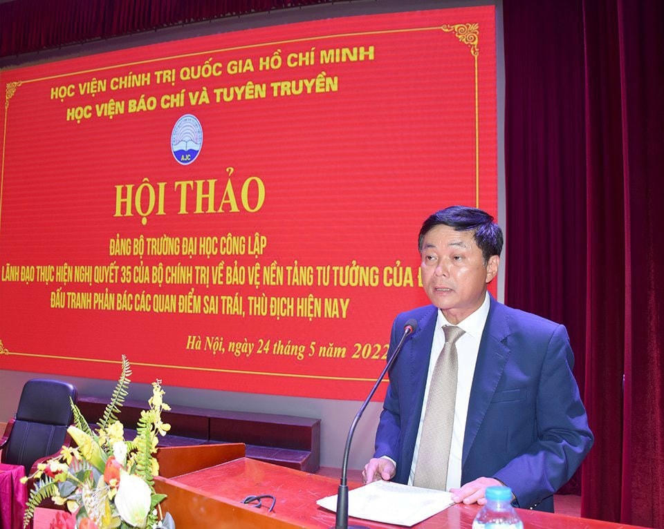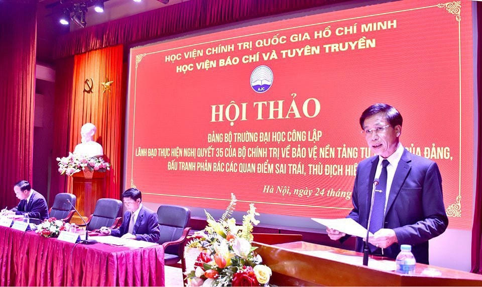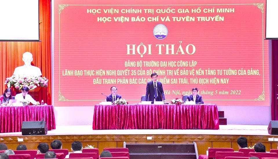 Ngày 24/5, tại Hà Nội, Học viện Báo chí và Tuyên truyền tổ chức Hội thảo khoa học cấp Bộ với chủ đề “Đảng bộ trường đại học công lập lãnh đạo thực hiện Nghị quyết 35 của Bộ Chính trị về bảo vệ nền tảng tư tưởng của Đảng, đấu tranh phản bác các quan điểm sai trái, thù địch hiện nay”.