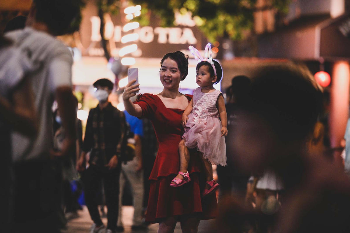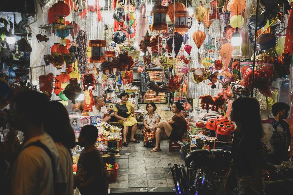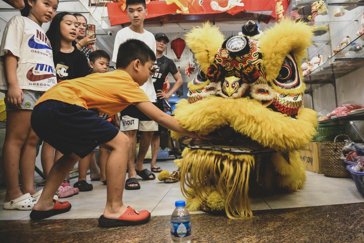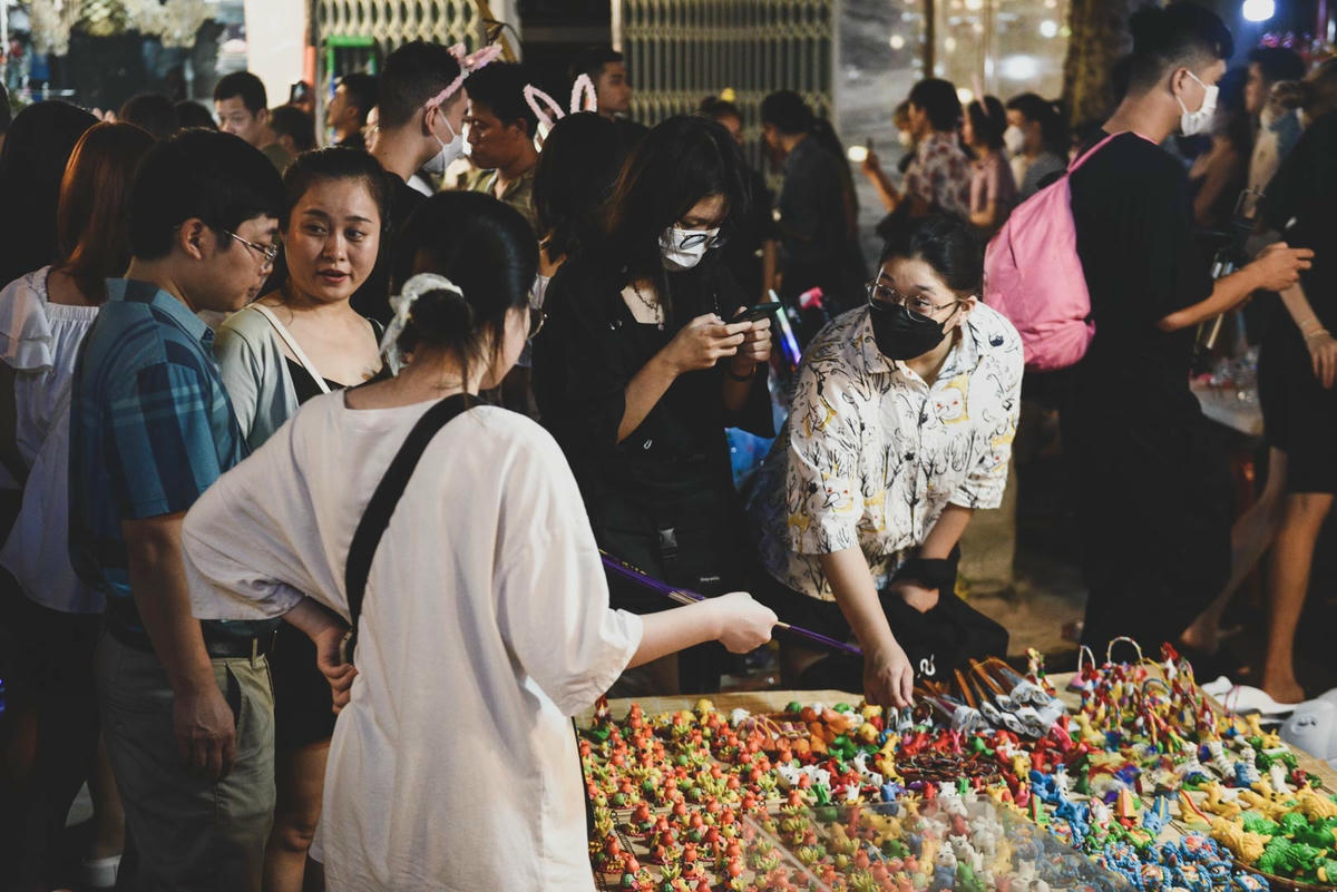 Theo như ghi nhận của PV Đại Đoàn Kết Online, ngay từ rất sớm, phố Hàng Mã đã đón tiếp hàng nghìn người dân, khách du lịch trong và ngoài nước đến đây đón Trung thu.Những gian hàng đồ chơi, đồ trang trí Trung thu đã làm con phố Hàng Mã thêm sinh động.Dù vẫn có nhiều người đến mua đồ chơi Trung thu, nhưng nhu cầu không còn cao như những ngày trước nên nhiều tiểu thương có thời gian rảnh rỗi tận hưởng không khí ở Hàng Mã vào tối trung thu.Cách đó không xa, hàng nghìn phương tiện nườm nượp đổ về tuyến đường Phùng Hưng, khiến giao thông ở đây trở nên ùn tắc.Nhiều người e ngại cảnh chen chúc, nên chỉ tranh thủ ghi lại khung cảnh lung linh trên phố Hàng Mã khi đi ngang qua."Năm nay thực sự may mắn khi Rằm Trung thu lại đúng vào ngày thứ 7, nên mình đã quyết định đưa gia đình lên đây. Không khí trên phố tối nay rất vui và náo nhiệt", anh Định (33 tuổi, Nam Từ Liêm) chia sẻ.Những gian hàng đồ chơi cũng hấp dẫn nhiều người tới mua.Đến khoảng 8h tối, tiết mục múa lân rồng diễn ra, thu hút không chỉ những em nhỏ, mà cả người lớn cũng tập trung rất đông. Múa lân là một nét đẹp văn hóa in sâu trong văn hóa của bao thế hệ người dân Việt Nam mỗi dịp Rằm Trung thu.Nhiều người nhanh tay ghi lại những hình ảnh mỗi năm có một lần này.Nhiều em nhỏ tỏ ra vô cùng thích thú khi được chứng kiến, tương tác với những chú lân.Cùng lúc đó, các tuyến phố khác xung quanh khu vực Hồ Hoàn Kiếm cũng thu hút người dân tới tham quan."Mình đến Hà Nội du lịch đã hơn 1 tháng và thật may mắn được chứng kiến không khí Trung thu ở đây. Thực sự Hà Nội hôm nay rất đẹp", anh Daniel (27 tuổi, khách du lịch Anh) chia sẻ.Đến 9h tối, tất cả các tuyến phố Hàng Bài, Hàng Bông, Phùng Hưng,... chính thức rơi vào ùn tắc cục bộ, người dân chỉ có thể di chuyển từng bước một.