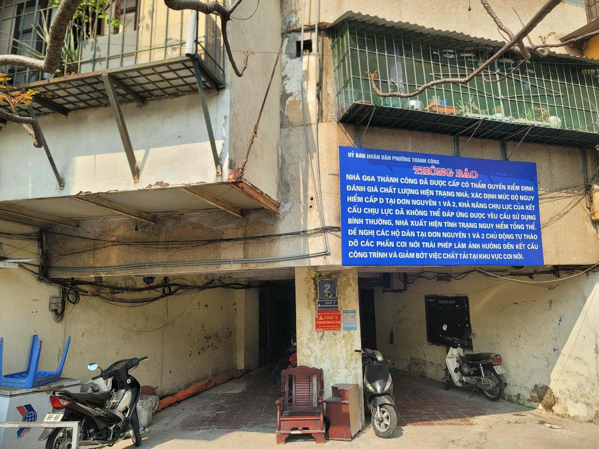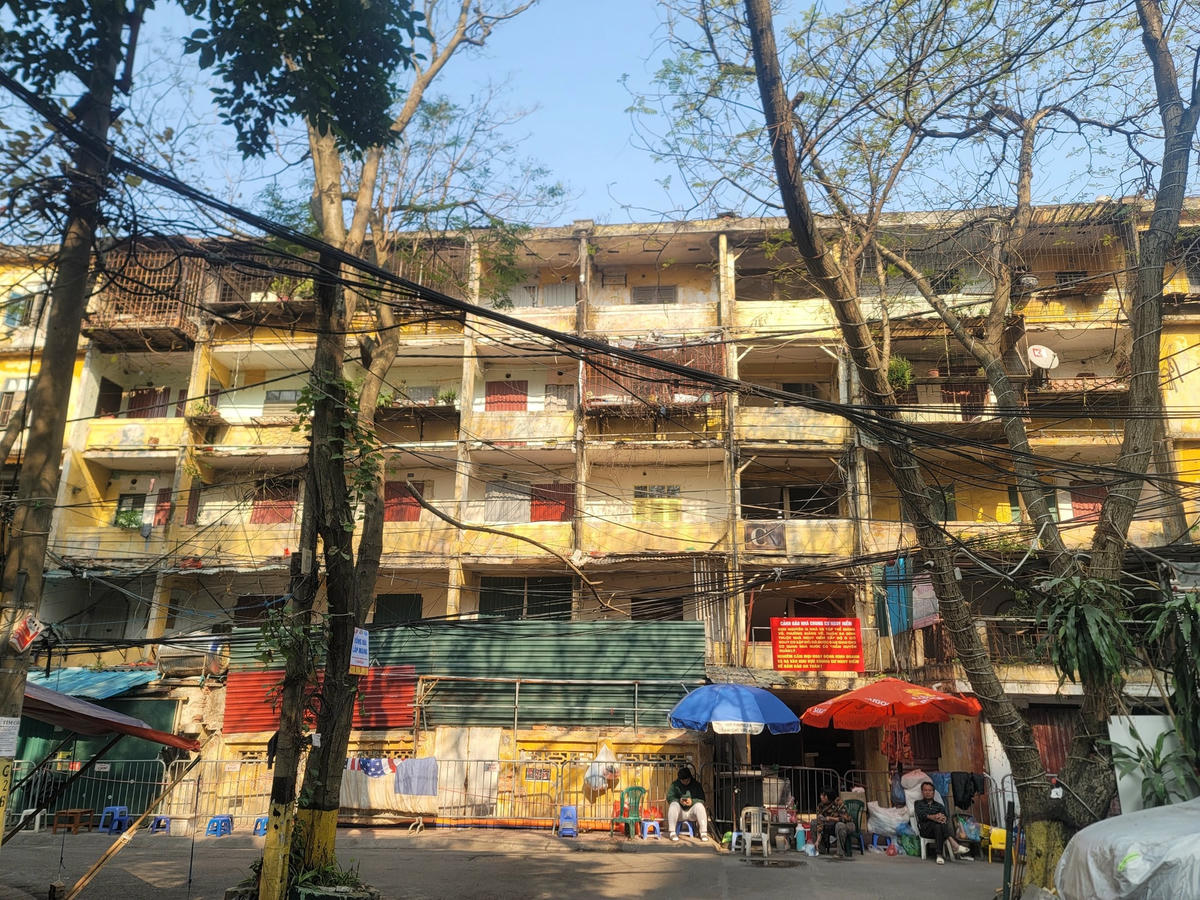 Tại đơn nguyên III nhà C8 Tập thể Giảng Võ (phường Giảng Võ, quận Ba Đình); cư dân đã chuyển đi hết, được dựng hàng rào và gắn cảnh báo nhà chung cư nguy hiểm.Chị Loan (47 tuổi), sống tại tầng 5 Đơn nguyên I Nhà C8 Giảng Võ cho biết, gia đình chị và các hộ dân cùng tầng vui vẻ đồng ý di dời, nhưng cũng đang băn khoăn, lo ngại con cái sẽ phải đi học xa nếu chuyển chỗ ở. Cũng theo chị, ở đây một số hộ ở tầng 1 đang kinh doanh tốt nên tiếc, không muốn chuyển đi.Nhà G6A Thành Công đã xuống cấp trầm trọng do các hộ dân cơi nới bất chấp, nhiều hộ cơi nới ra gần 3m, trông cực kỳ nguy hiểm.UBND phường Thành Công đã ra thông báo cho cư dân tháo dỡ các phần cơi nới thế nhưng nhiều hộ vẫn không chấp hành.Tường xuống cấp nghiêm trọng, vữa bong từng mảng.Ghi nhận tại nhà A, khu tập thể Ngọc Khánh. Dãy nhà đã được dựng hàng rào có cảnh báo nguy hiểm; còn vài hộ kinh doanh tại tầng 1.Cầu thang nứt toác, tiềm ẩn nhiều nguy hiểm.Cơ sở vật chất không đảm bảo.Tại nhà B khu tập thể Ngọc Khánh, mọi sinh hoạt vẫn diễn ra bình thường. Quán hàng tầng 1 kinh doanh sôi động.Bác Thống (79 tuổi, cựu công nhân Công ty xây dựng nhà ở Hà Nội) sống ở tầng 3 nhà B khu tập thể Ngọc Khánh từ năm 1984. Căn hộ 43,7m2 là nơi sinh sống của 3 hộ với 9 khẩu. Bác mong các cấp chính quyền sớm giải quyết để chuyển đi chỗ ở mới an toàn hơn, rộng rãi hơn.Cũng như bác Thống, cô Mỹ (68 tuổi), cô Ngọc (59 tuổi) ở khu D2, D3 khu tập thể Ngọc Khánh đã sống gần 30 năm tại đây cũng vui vẻ, mong muốn chuyển đi, vì sự xuống cấp của nơi đây, đặc biệt là hệ thống thoát nước, mưa xuống cống tràn, tràn từ nhà vệ sinh ngược vào trong. “Ở đây chỉ những người có mặt bằng kinh doanh buôn bán ở tầng 1 phía trước mới không muốn chuyển đi thôi”. cô Mỹ chia sẻ.