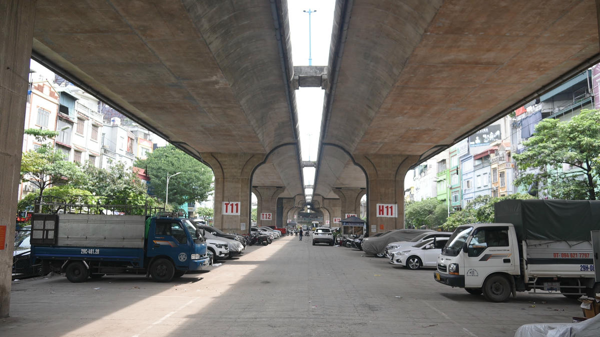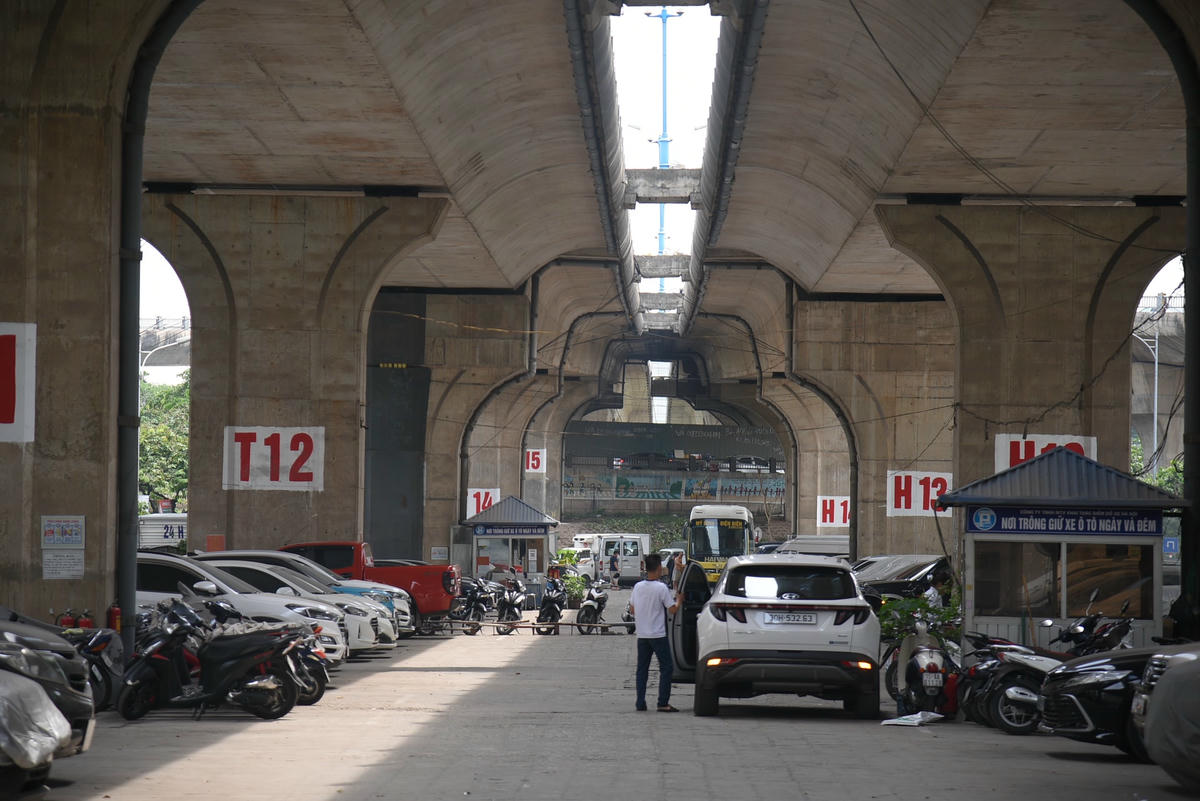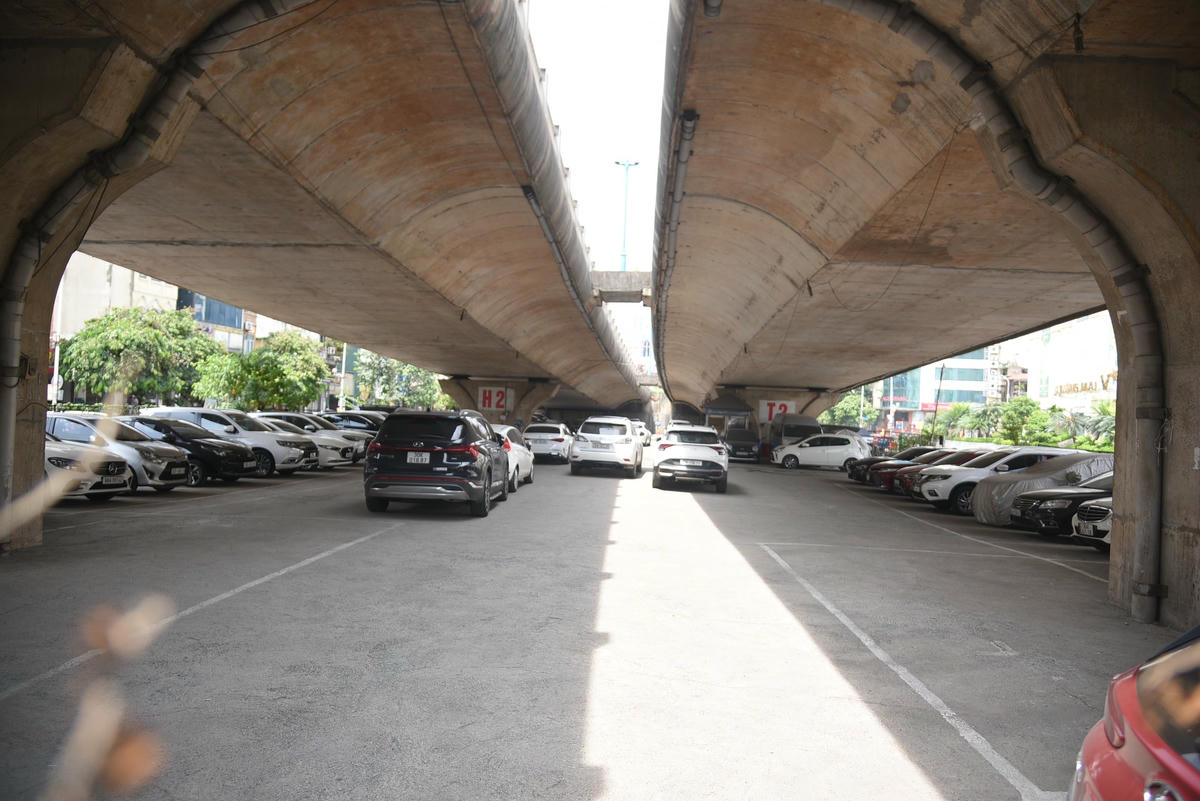 Cận cảnh các gầm cầu cạn sử dụng làm bãi đỗ xe ở Hà Nội
