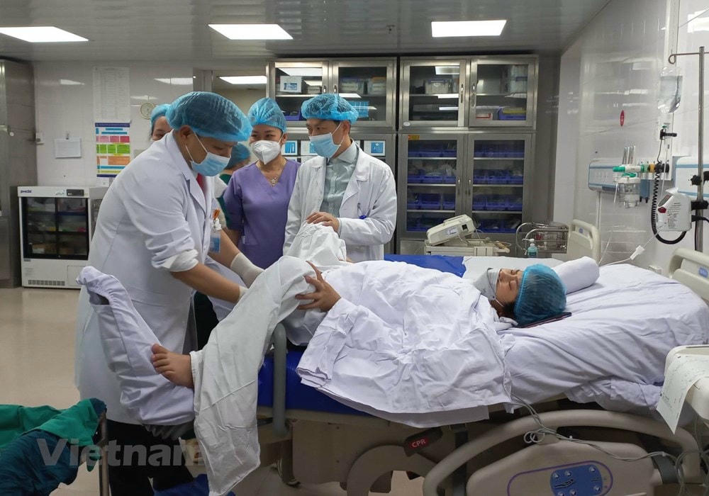 Bé gái Vũ Ngọc Hân, nặng 2,8kg là công dân nhí đầu tiên chào đời vào thời khắc chuyển giao sang năm 2023 tại Bệnh viện Phụ sản Trung ương. (Ảnh: PV/Vietnam+).Công dân nhí đầu tiên tại Bệnh viện Phụ sản Trung ương cất tiếng khóc chào đời trong niềm hạnh phúc của gia đình và các y bác sỹ. (Ảnh: T.G/Vietnam+).Phó giáo sư Trần Danh Cường - Giám đốc Bệnh viện Phụ sản Trung ương trao bé gái cho người bố. (Ảnh: T.G/Vietnam+).Một bé trai sinh mổ vào thời khắc đầu tiên của năm mới 2023. (Ảnh: T.G/Vietnam+).Bé trai sinh mổ, nặng 3,1kg. (Ảnh: T.G/Vietnam+).Tại Phòng đõ đẻ 2, Khoa Đẻ (Bệnh viện Phụ sản Trung ương. (Ảnh: T.G/Vietnam+).Vào thời điểm chuyển giao sang năm mới có 12 sản phụ chuyển dạ, chờ sinh. (Ảnh: T.G/Vietnam+).Các y bác sỹ chăm sóc, theo dõi sức khoẻ cho sản phụ. (Ảnh: T.G/Vietnam+).Người chồng vào phòng chờ sinh động viên các sản phụ. (Ảnh: T.G/Vietnam+).Phó giáo sư Trần Danh Cường - Giám đốc Bệnh viện trực tiếp thực hiện đỡ đẻ và cắt rốn cho cháu bé. (Ảnh: T.G/Vietnam+).Các bác sỹ chuẩn bị đỡ đẻ cho một ca sinh thường rất suôn sẻ vào thời khắc chuyển sang năm mới. (Ảnh: T.G/Vietnam+).“Công dân nhí" đầu tiên của bệnh viện được nhân viên y tế đặt trên ngực mẹ với phương pháp da kề da. (Ảnh: T.G/Vietnam+).Các sản phụ sắp sinh. (Ảnh: T.G/Vietnam+).Em bé được chăm sóc sau sinh. (Ảnh: T.G/Vietnam+).Một sản phụ sinh mổ vào thời điểm đầu năm mới 2023.(Ảnh: PV/Vietnam+).Các bác sỹ thực hiện ca phẫu thuật sinh mổ. (Ảnh: PV/Vietnam+).Bé trai nặng 3,1kg bằng phương pháp sinh mổ. (Ảnh: PV/Vietnam+).Trong thời khắc đón năm mới, bệnh viện đã chuẩn bị nhiều món quà để chào đón những công dân đầu tiên của năm 2023. (Ảnh: T.G/Vietnam+).