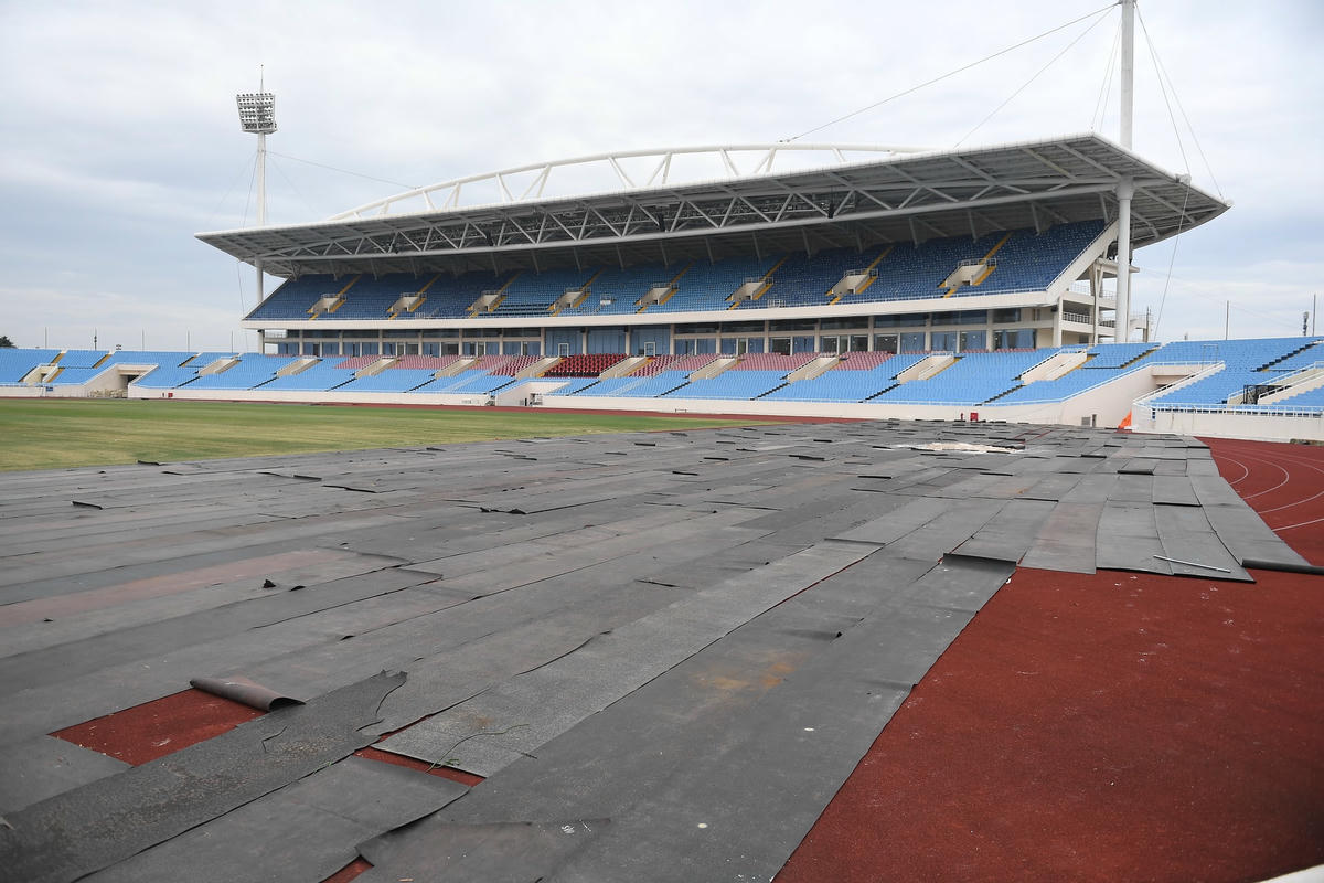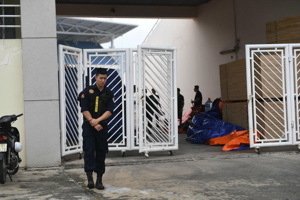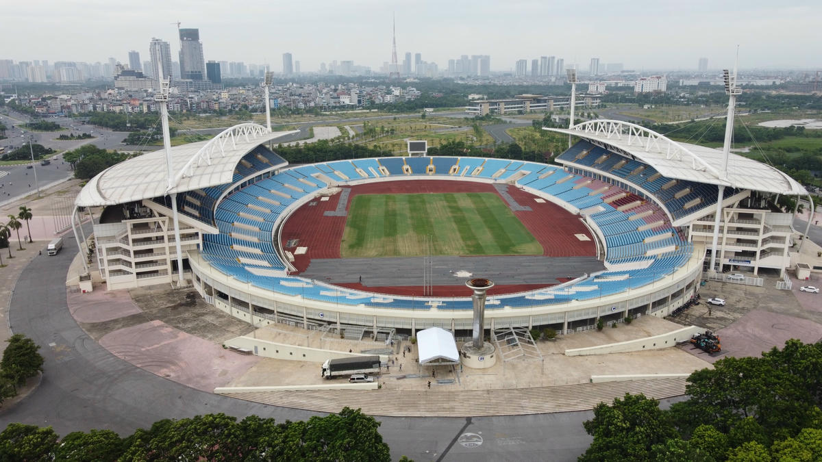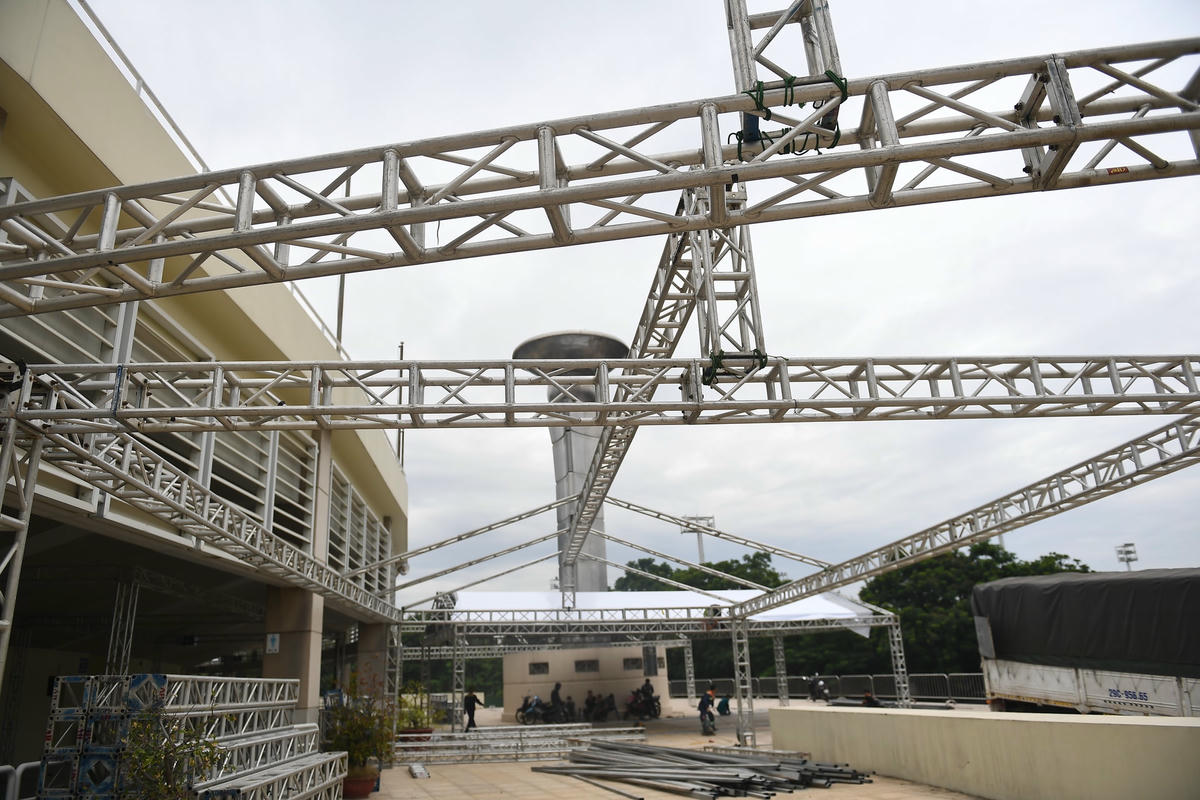 Show diễn của nhóm nhạc BlackPink sắp diễn ra tại Hà Nội. Hiện nay, các công nhân đang hối hả làm công tác chuẩn bị sân khấu trên sân vận động Mỹ Đình.