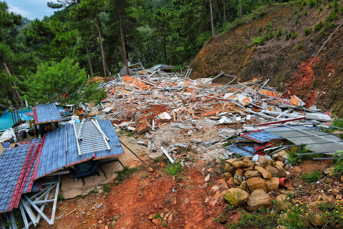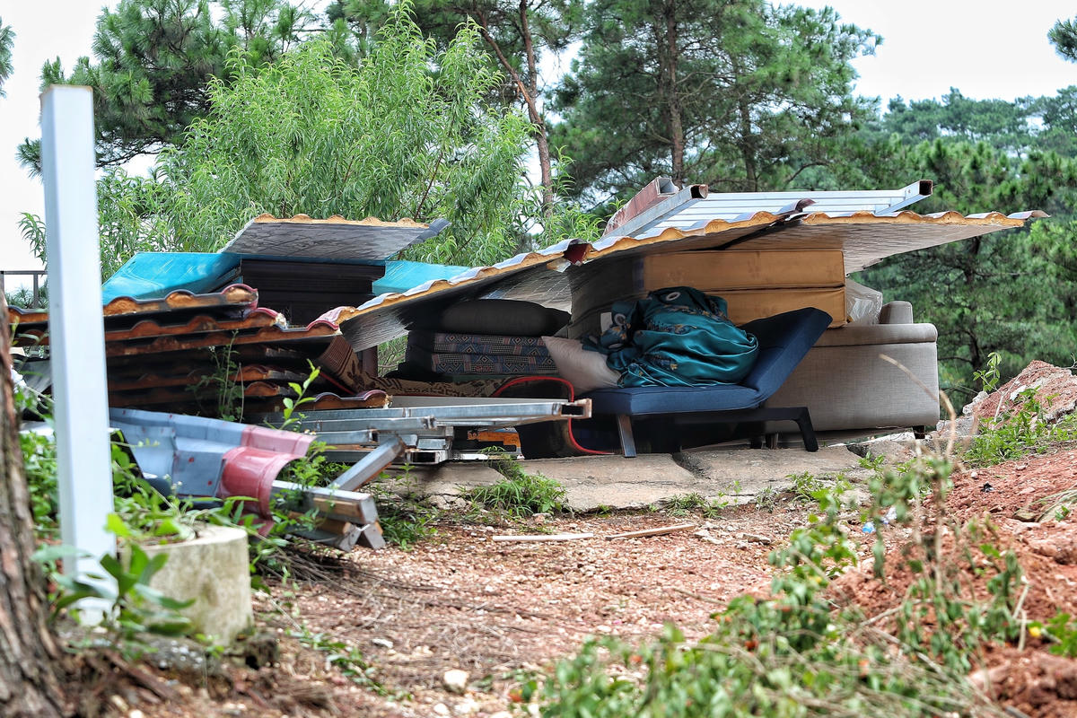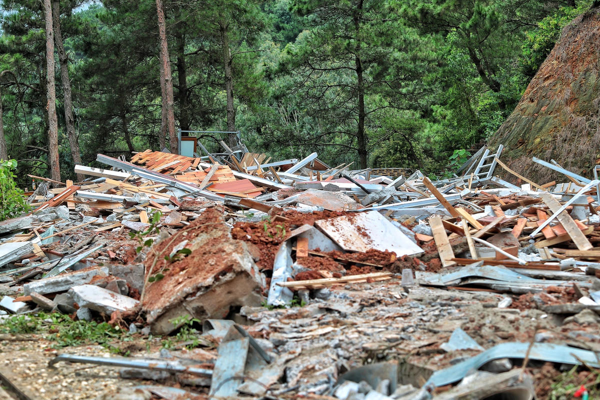 Như Đại Đoàn Kết Online đã đưa tin, tại xóm Ban Tiện (thôn Phú Ninh, xã Minh Phú, huyện Sóc Sơn) - khu vực xảy ra vụ sạt lở vùi lấp hàng loạt ô tô có 5 công trình vi phạm, nằm trong phạm vi đất rừng. Trong đó, có 4 căn homestay, 1 căn nhà ở trên đồi nằm dọc 2 bên con đường bê tông.Theo ghi nhận, sáng 29/8 tại khu vực đồi Dõng Chum lực lượng chức năng đã tiến hành cưỡng chế tháo dỡ 1 trong 5 công trình, homestay xây sai phép trên đất rừng phòng hộ. Tại căn nhà bị cưỡng chế vẫn ngổn ngang các thiết bị, sắt thép...Gạch đá, sắt thép nằm chất đống.Hình ảnh chiếc trụ cổng căn nhà được để lăn lóc.Căn nhà xây dựng sai phép đã được tháo dỡ hoàn toàn.Hàng rào của công trình này cũng đã được tháo dỡ.Các đồ vật của ngôi nhà vẫn chưa được vận chuyển đi.Ông Phạm Quang Ngọc, Phó Chủ tịch UBND huyện Sóc Sơn (Hà Nội) cho biết, dự kiến trong tháng 8, 9 lực lượng chức năng sẽ tiến hành cưỡng chế phá dỡ 5 công trình vi phạm, nằm trong phạm vi đất rừng ở xóm Ban Tiện.Hình ảnh gốc cây tại gần khu vực xảy ra sạt lở cũng đã có hiện tượng trơ rễ.4 công trình còn lại dự kiến sẽ bị cưỡng chế tháo dỡ trong tháng 9.