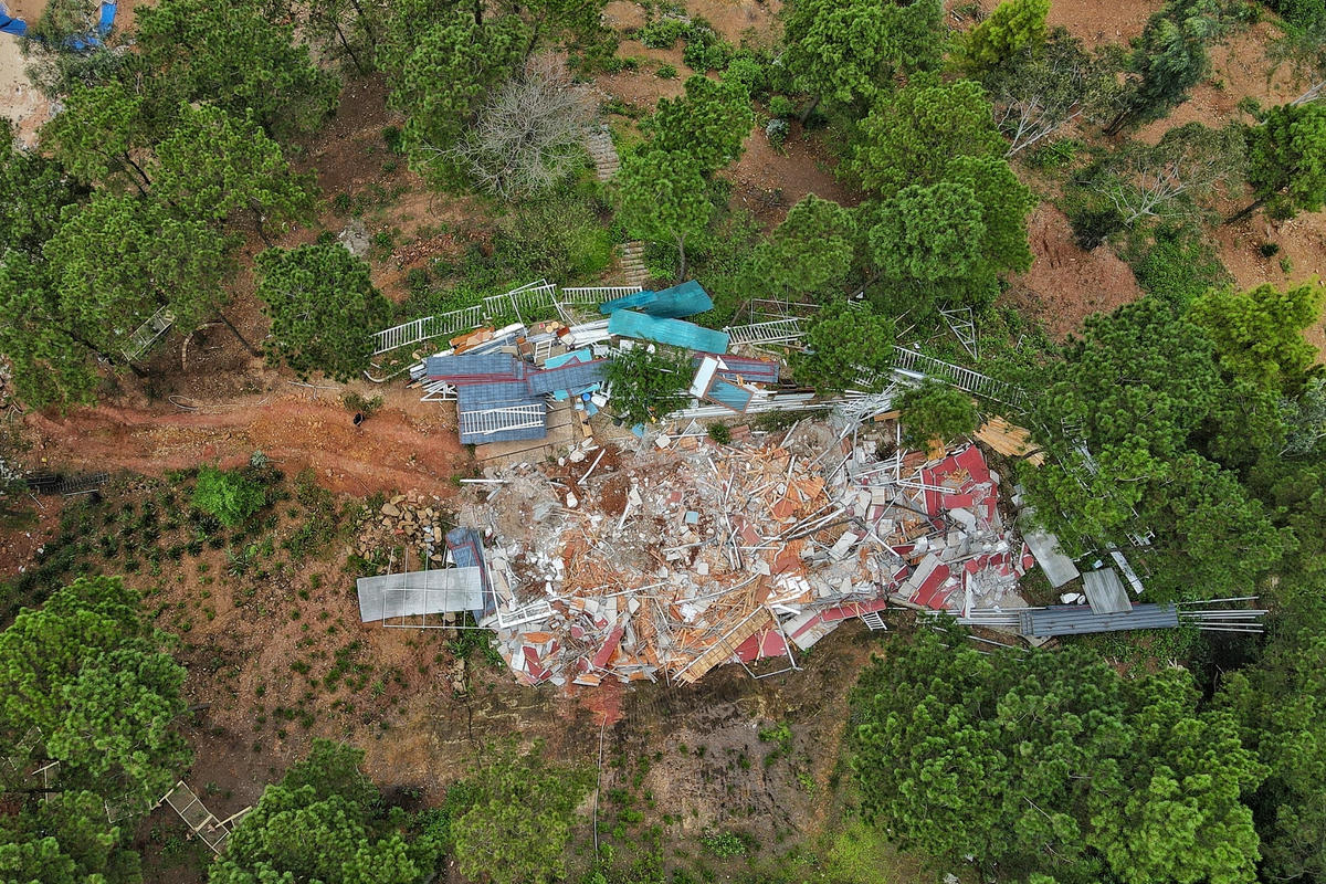 Cận cảnh công trình ‘xẻ thịt’ đất rừng phòng hộ ở Sóc Sơn bị tháo dỡ